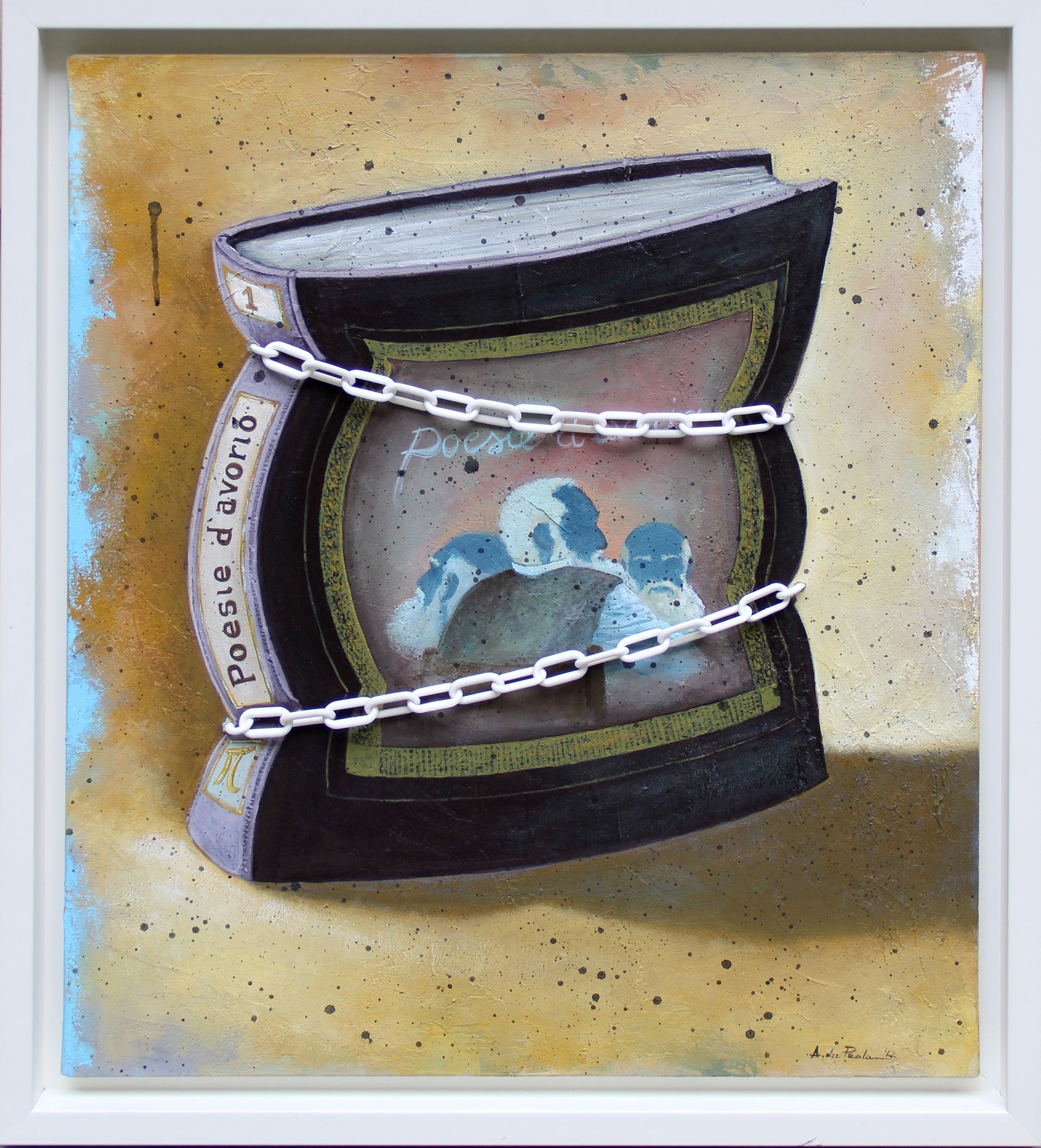 SPADAFORA Antonello, Poesie d'avorio, 2012, tecnica mista e catene su tela, cm 70x60