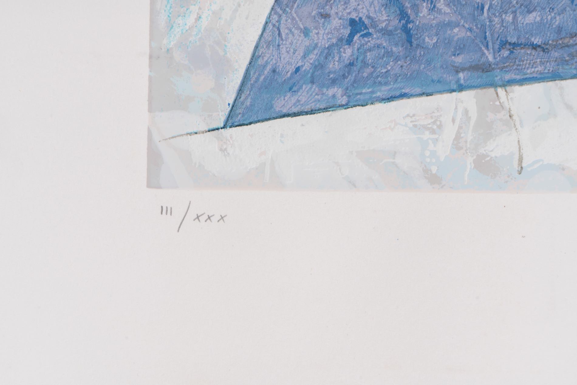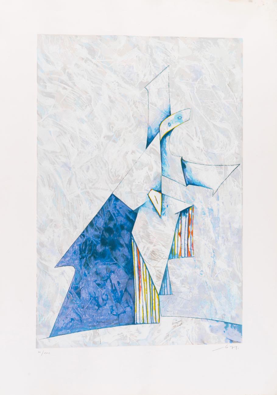 Litografia materica a colori su carta, firmata in basso a destra, numero di tiratura in basso a sinistra III/XXX, Lastra H cm 76.5x51 (lievi difetti)