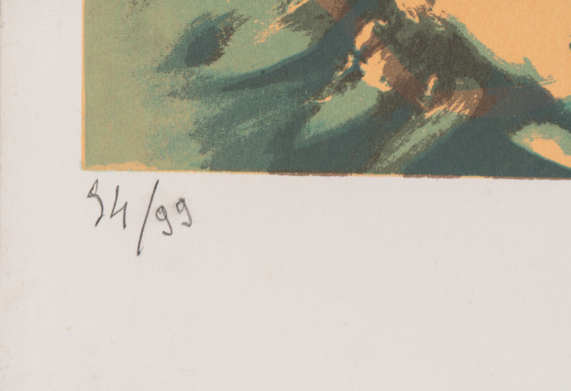 Litografia a colori su carta, firmata e datata in basso a destra, numero di tiratura in basso a sinistra 94/99, Lastra H cm 64x63 (lievi usure)