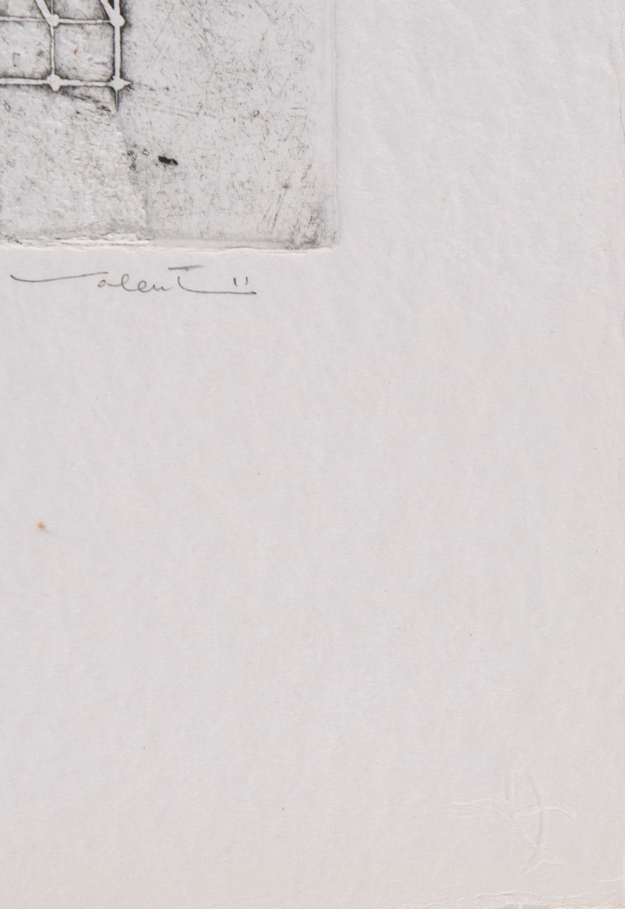 Acquaforte su carta a mano Duchen, firmata in basso a destra, numero di tiratura in basso a sinistra 64/90, reca timbro a secco, H cm 26x21.5