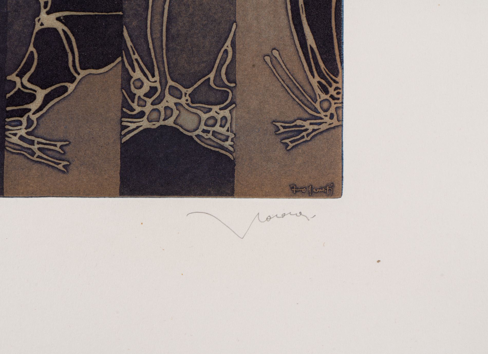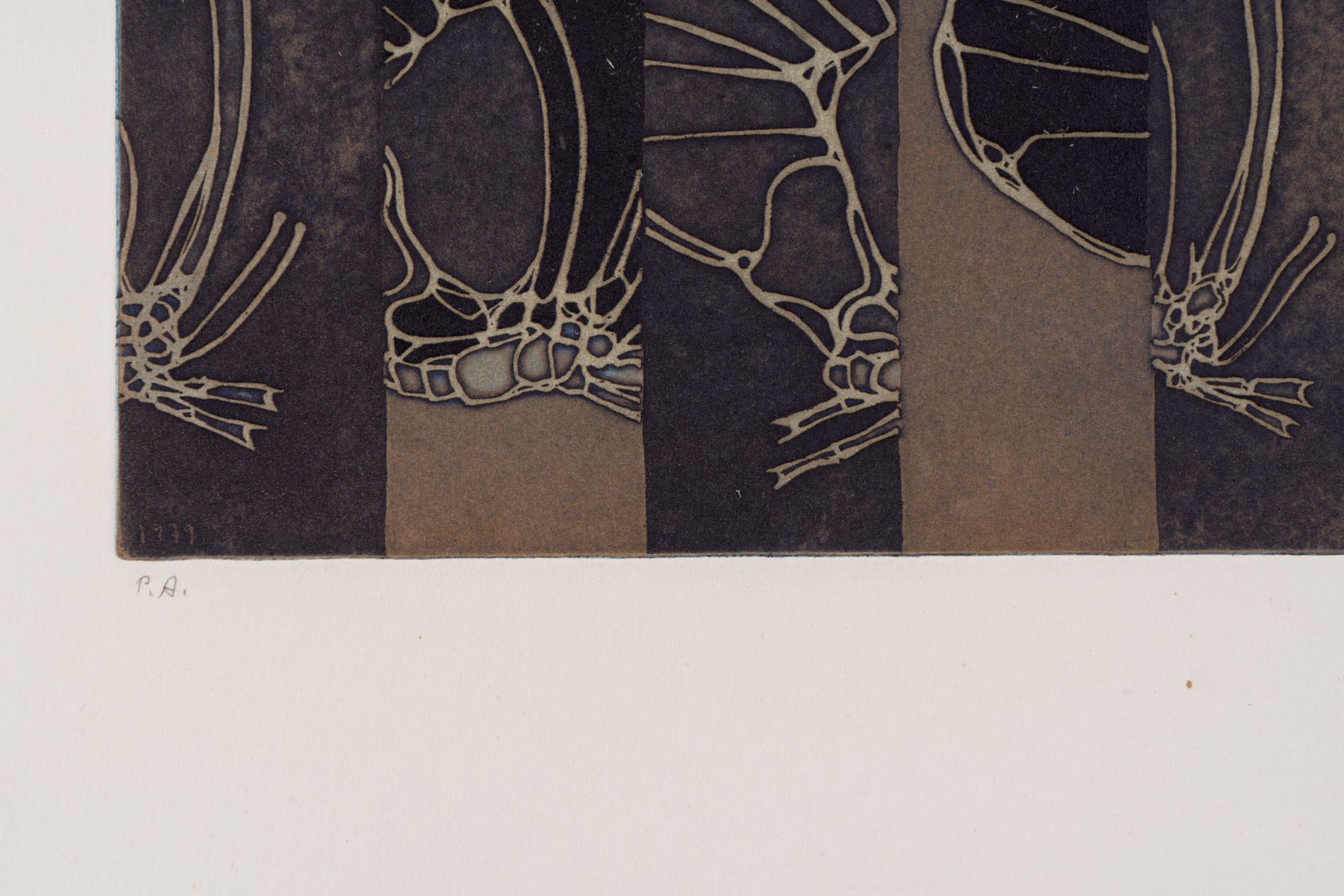 Litografia a colori su carta, firmata in basso a destra, esemplare in basso a sinistra P.A., Lastra H cm 20.5x49
