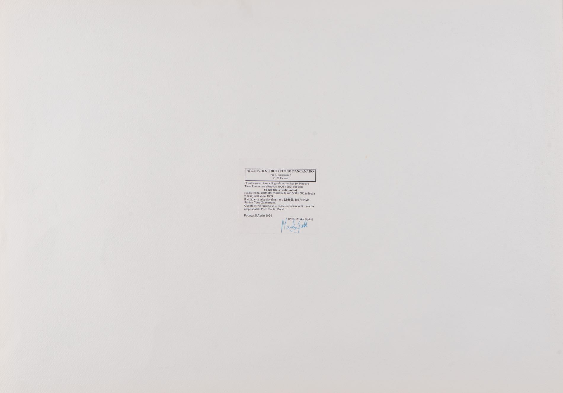 Litografia su carta, firmata in basso a destra, numero di tiratura in basso a sinistra 39/100, presenta al retro etichetta dell’Archivio Storico Tono Zancanaro a firma Manlio Gaddi per autenticità, H cm 50x70