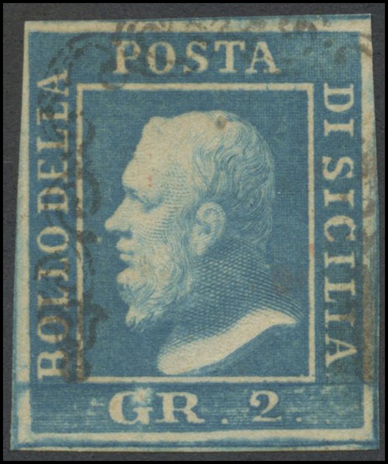 Sicily, 1859, 2gr. N.7b Cobalt (II plate), used. (A+) (Chiavarello, A. Diena)