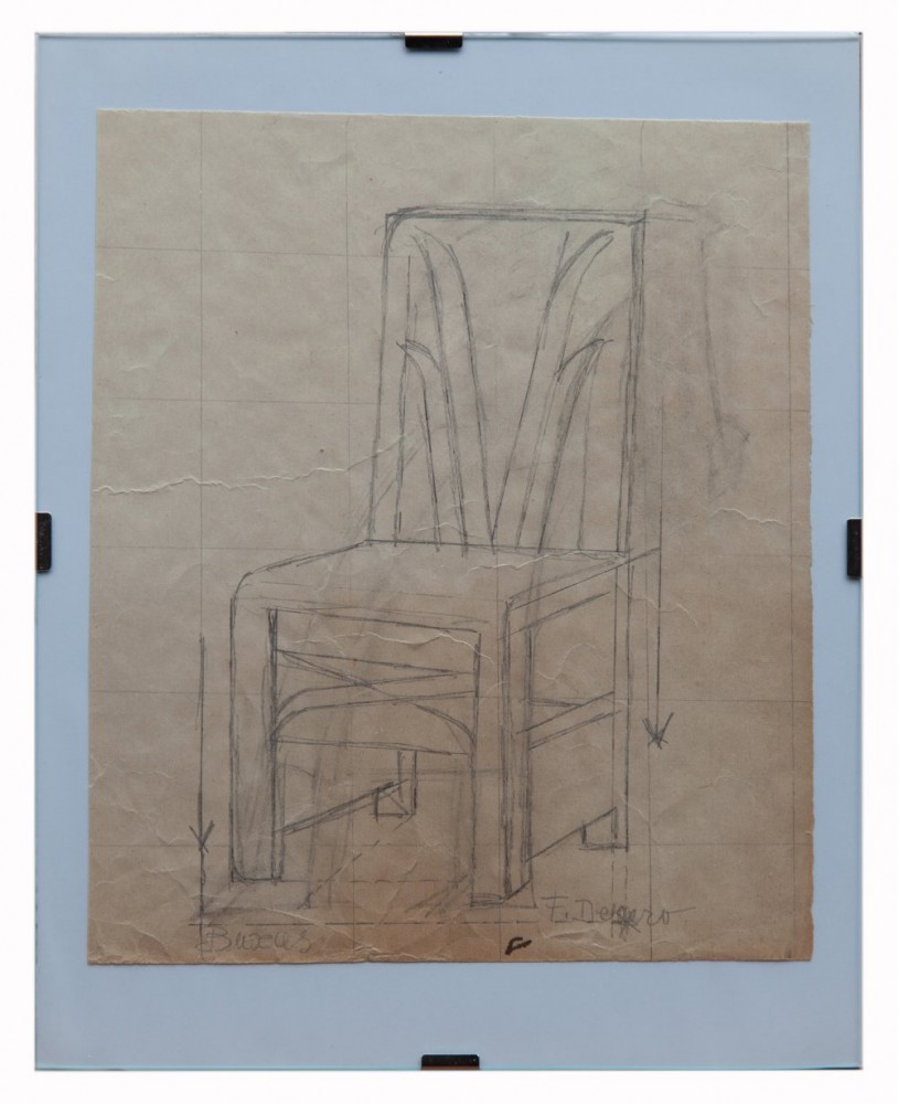 Fortunato Depero Fondo (TN) 1892 - Rovereto (TN 1960 Sedia con decorazione ad intarsio (studio) Matita su carta cm 21x17,5