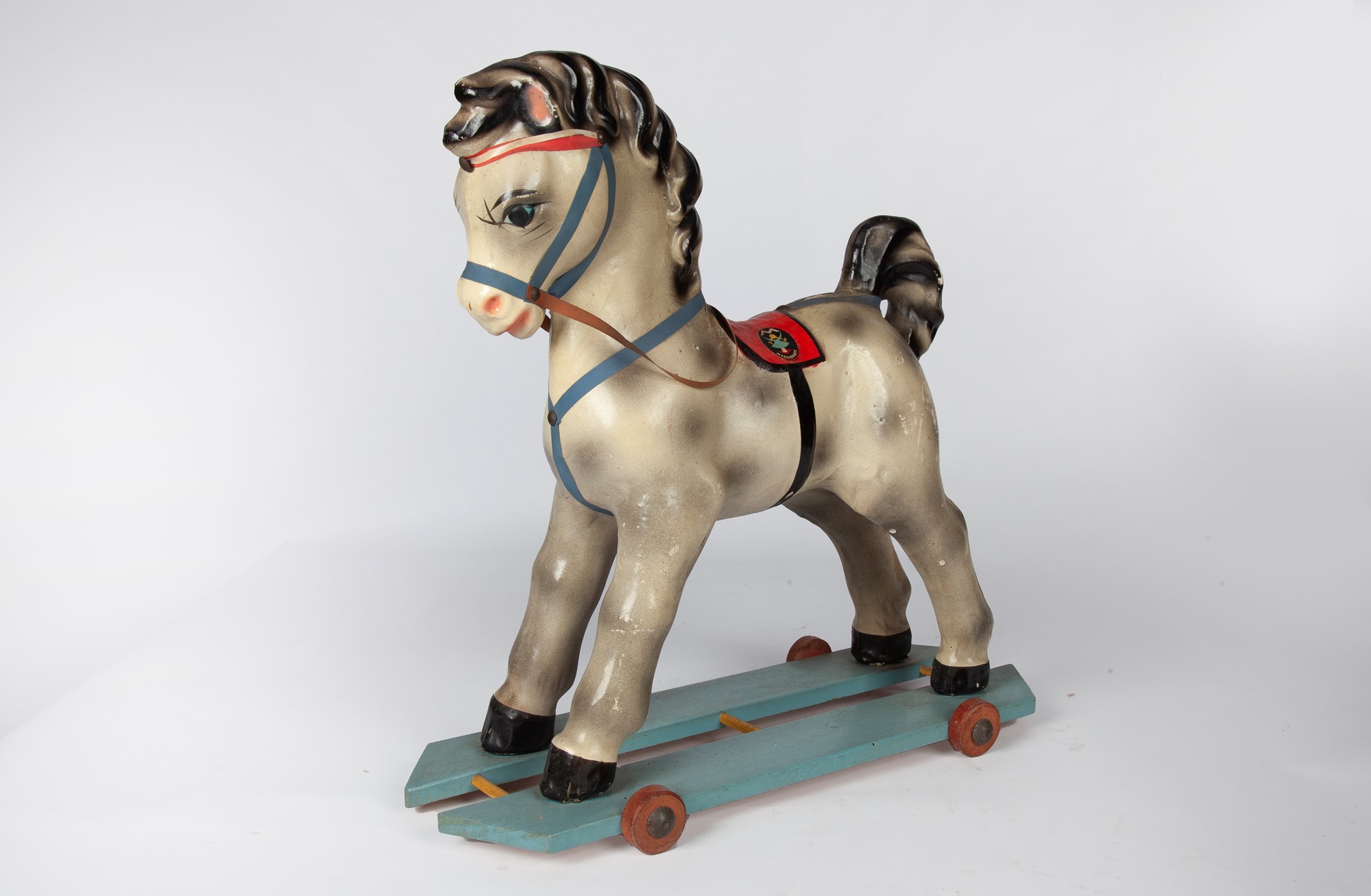Piccolo cavallo da traino in plastica dipinta, Migliorati, Anni Sessanta