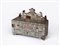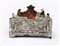con fitta e minuziosa decorazione illustrata con la tecnica del tahbiir iniettando inchiostro sul disegno inciso; vaschetta superiore circolare con coperchio e tre tiretti frontali. Lievi difetti e piccole mancanze