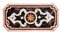 centrato da stella a otto punte in diaspro entro medaglione circolare affiancato da elementi cuspidati; angoli arrotondati e profilo modanato