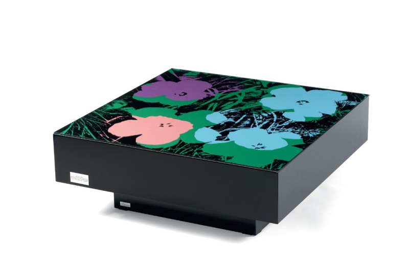 Andy Warhol (d'aprés) Pittsburgh 1928 - New York 1987 Tavolo Flowers Tavolino con serigrafia a colori, es. 33/150, cm. 35x91x91 Su un lato etichetta con dati dell'opera e tiratura: Ex. N. 33/150.