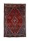 fondo rubino, centrato da losanga e decorato a motivi naturalistici stilizzati sparsi; cantonali blu
