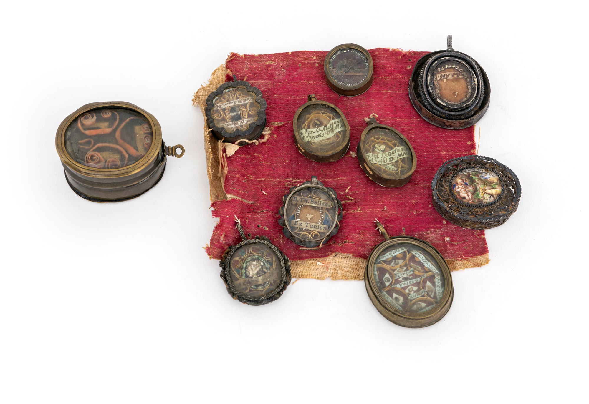 Lotto 158 | Lotto composto da nove reliquiari devozionali a capsula ed una piccola scatola