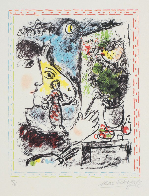 Marc Chagall Vitebsk 1887 - Saint Paul de Vence 1985 Monde familier, 1983 Litografia a colori, es. 18/50, cm. 35x27 (lastra), cm. 54x42,6 (carta) Firma a matita sul margine in basso a destra: Marc Chagall, tiratura in basso a sinistra: 18/50. Tiratura di 50 esemplari numerati e firmati da 1 a 50 su carta Arches, più 12 prove in nero, numerate e firmate, riservate all'artista. Bibliografia: Charles Sorlier, Chagall lithographe VI, 1980-1985, Édition André Sauret, Monte-Carlo, 1986, p. 102, n. 1015; Marc Chagall. The Lithographs. La collection Sorlier, catalogo della mostra, Stuttgart, Staatsgalerie, 19 settembre 1998 - 10 gennaio 1999, poi Hamburg, Deichtorhallen, 18 febbraio - 9 maggio 1999, Verlag Gerd Hatje, 1998, p. 375, n. 1015.