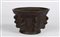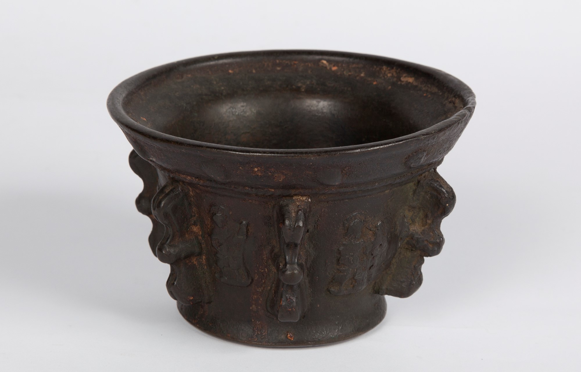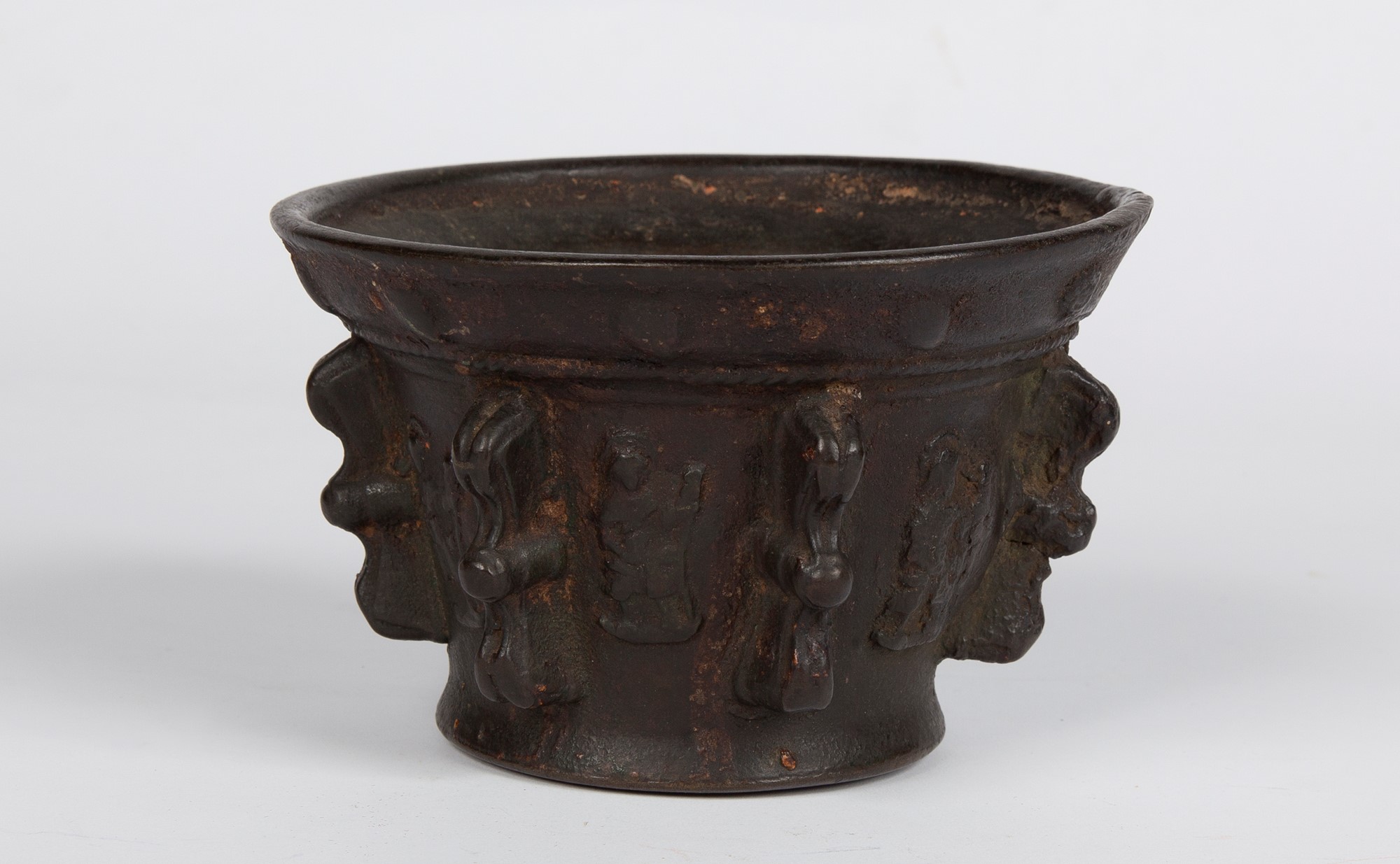 caratterizzato da anse verticali che spartiscono decorazione resa in rilievo; senza pestello