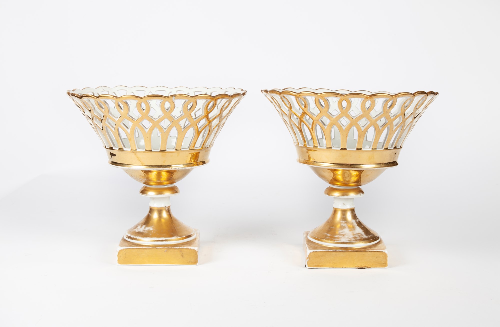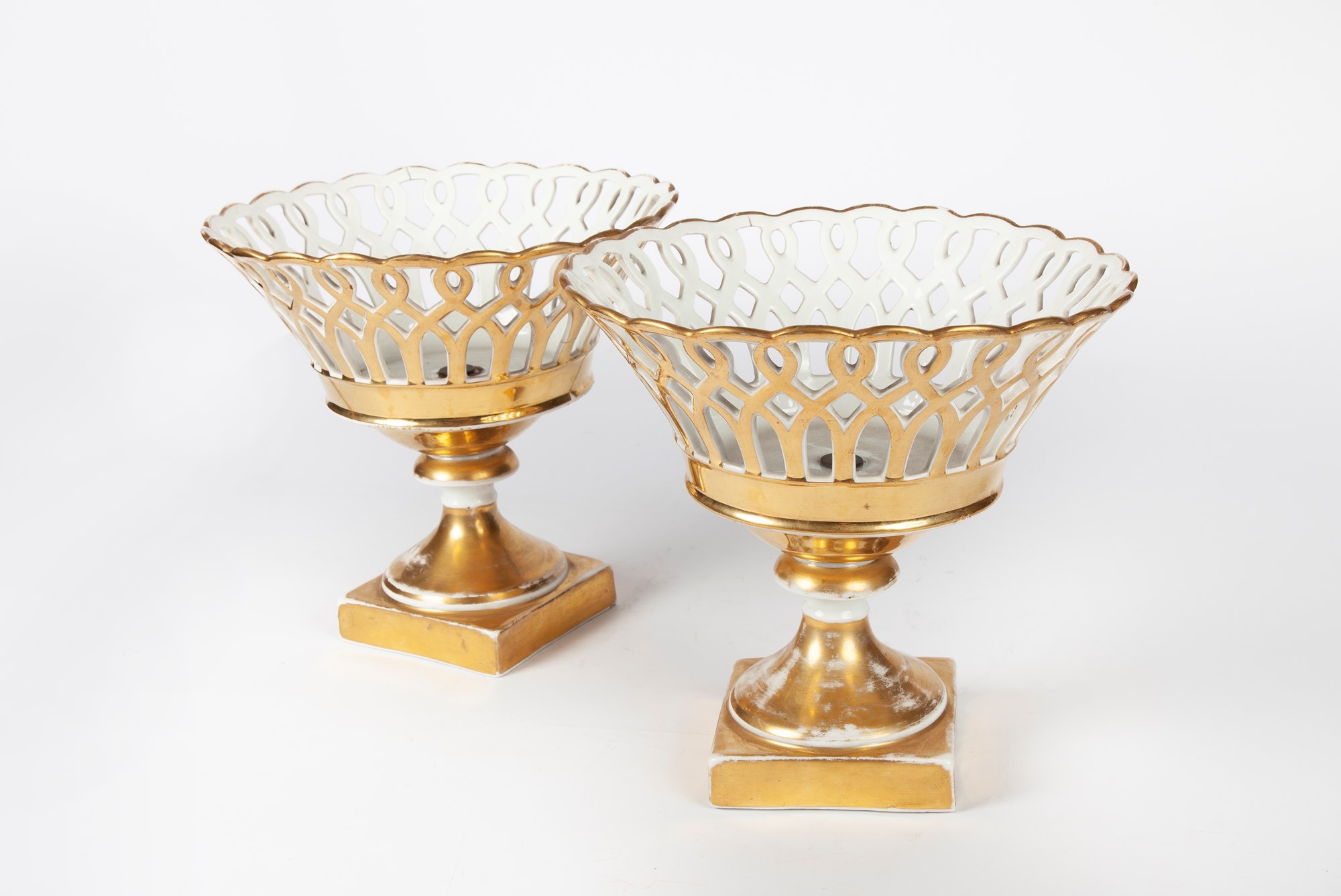 Coppia di alzate in porcellana bianca e oro di gusto Impero
