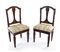 con cornici intagliate percorse da motivi guilloché; schienali a giorno, sedili imbottiti, gambe rastremate e scanalate. Recano stampiglia sotto sedile: Contis M. du Roy