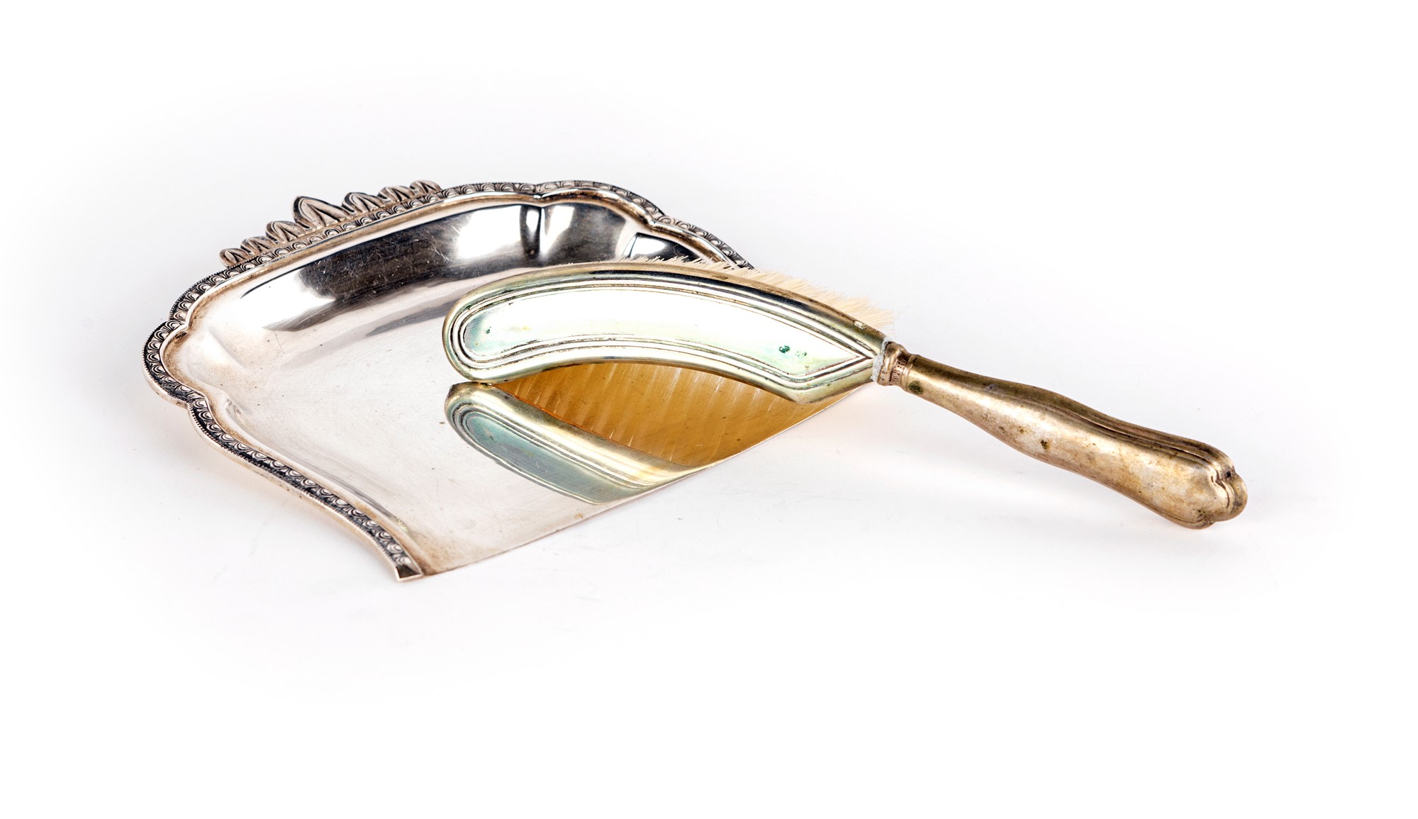 con profilo cesellato; unita ad una spazzola con manico dissaldato