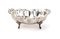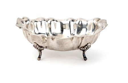 di forma ovale con orlo incurvato e baccellato, piedi con attacco cesellato a foglia