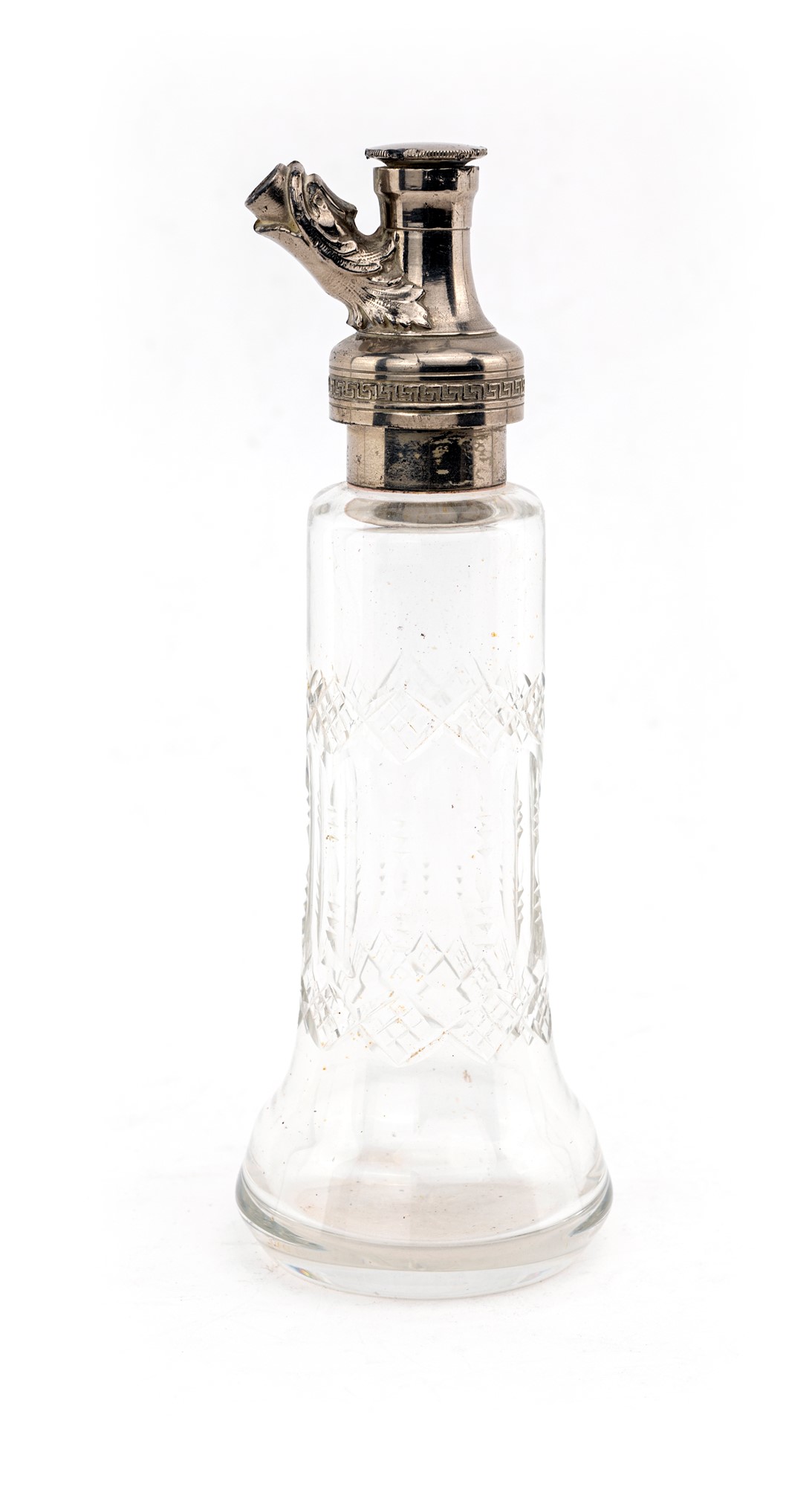 con apertura superiore a vite e reggistoppino cilindrico emergente da una bocca zoomorfa