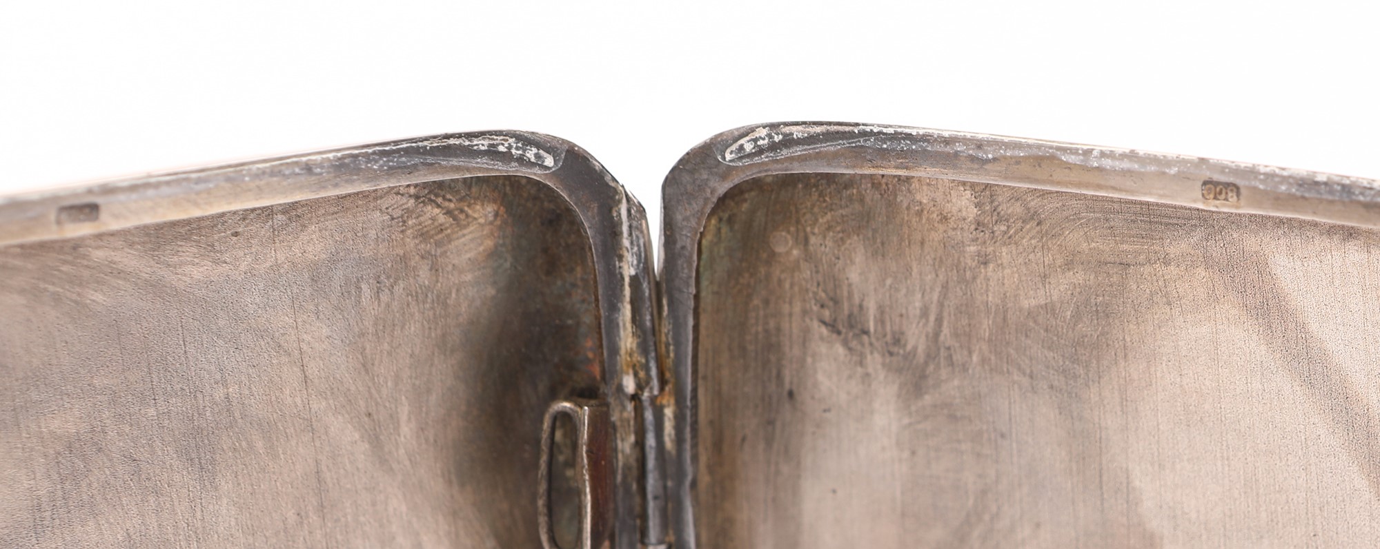 con apertura a scatto e coperchio decorato da fasce incise al bulino