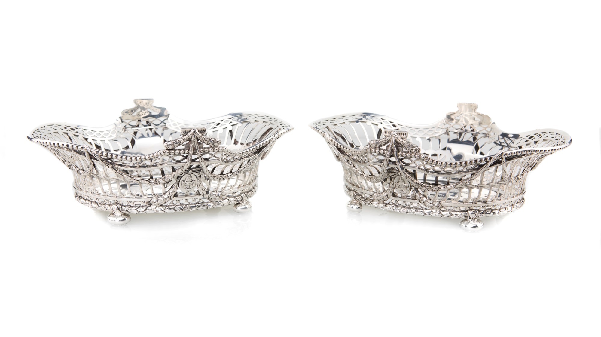 Coppia di cestini in argento 925, Londra 1901, argentieri Comyns e Sons