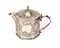 interamente decorata a sbalzo con cartigli, motivi naturalistici e figure di amorino; coperchio incernierato con presa a balaustro, versatoio a mensola e manico sagomato