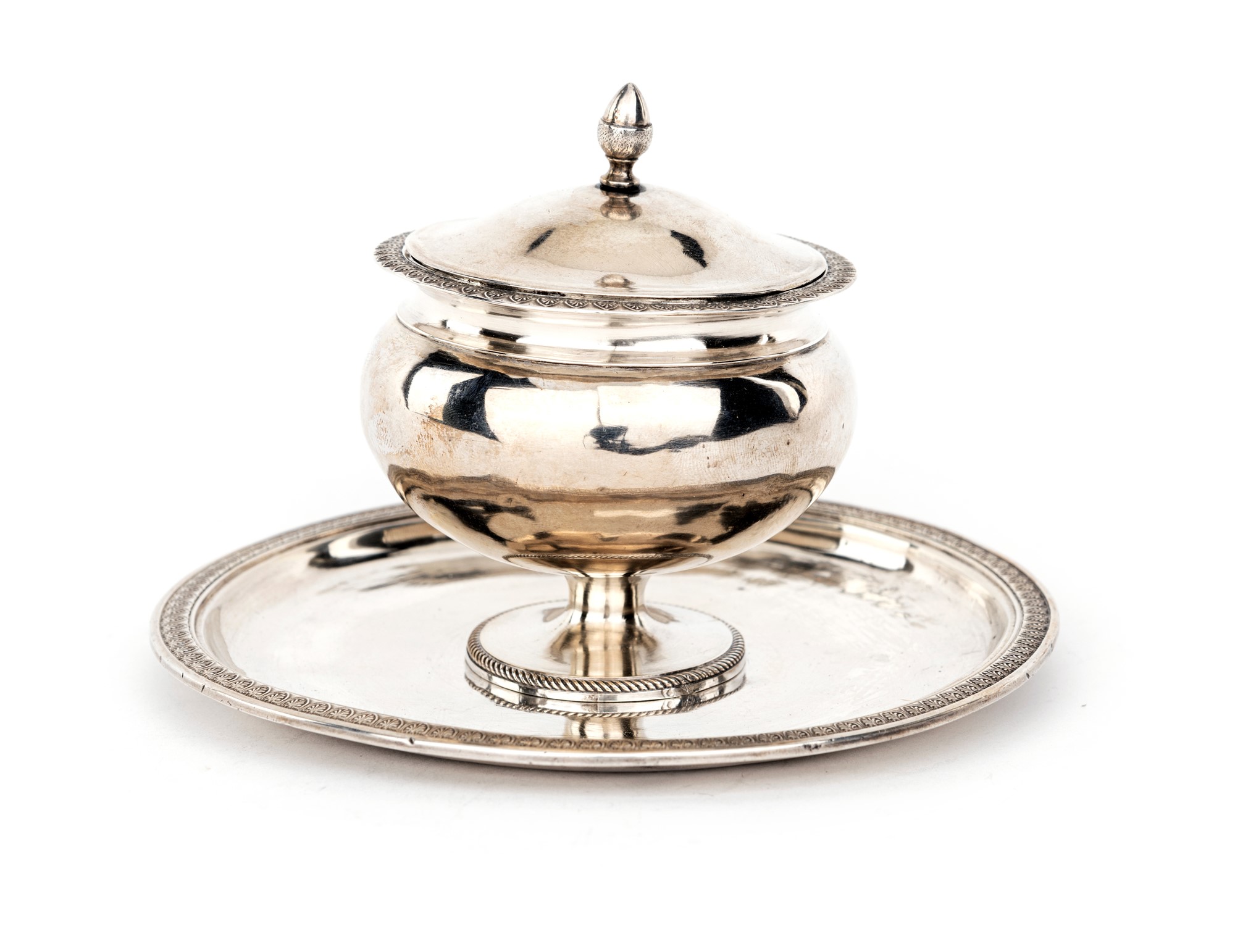 Zuccheriera in argento con coperchio e piatto, Genova, 1840