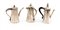 Tre caffettiere in miniatura in argento, argenteria Giacomo Vavassori, Milano