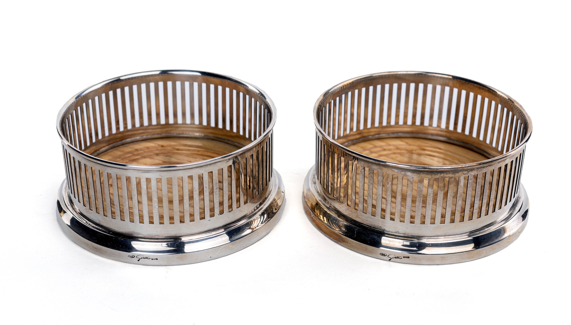 Coppia di sottobottiglia in argento, Alessandria, argentiere Enrico Goretta (attivo dal 1947 al 2005)