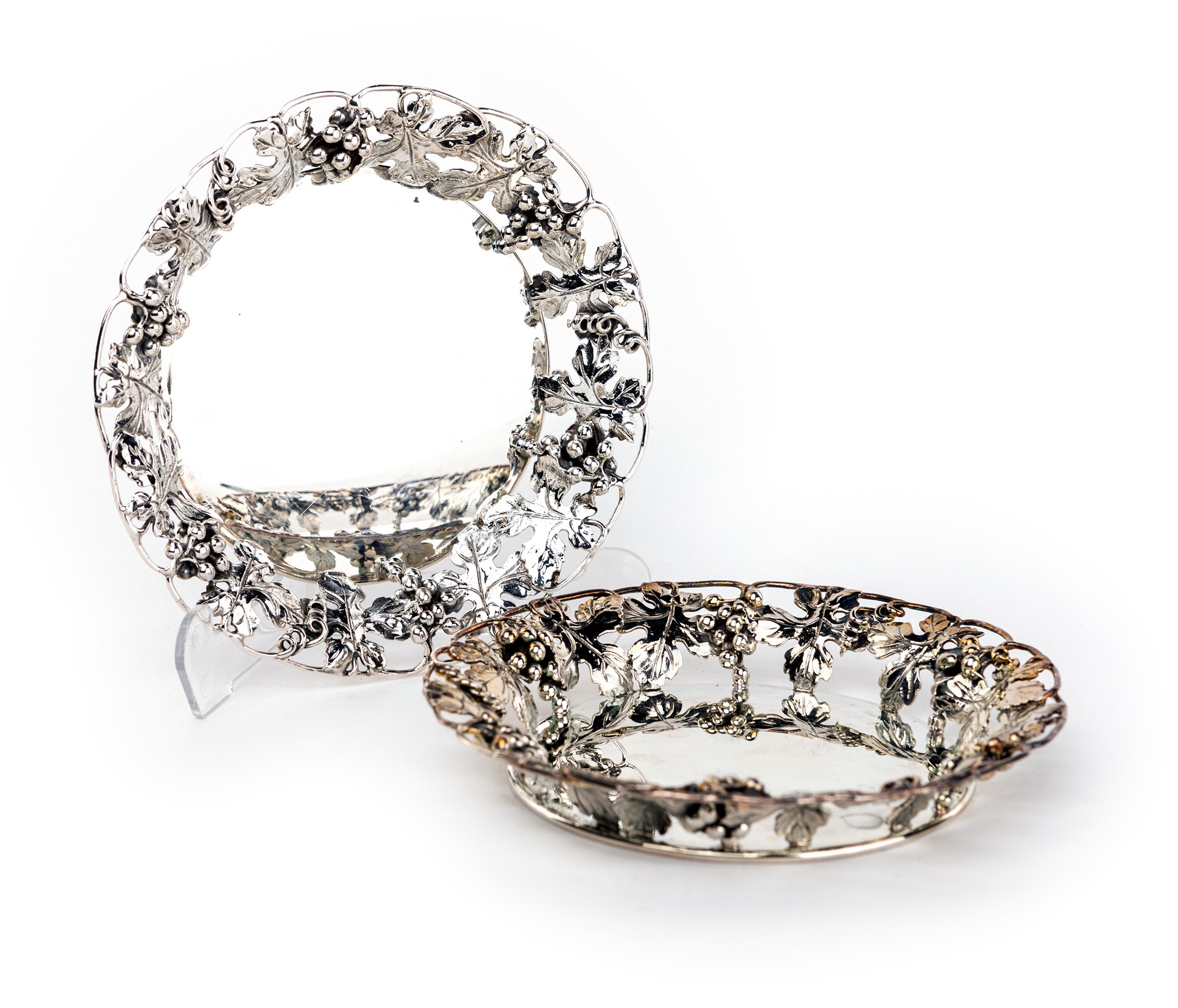 Coppia di sottobottiglia in argento 800, Enrico Goretta, Alessandria