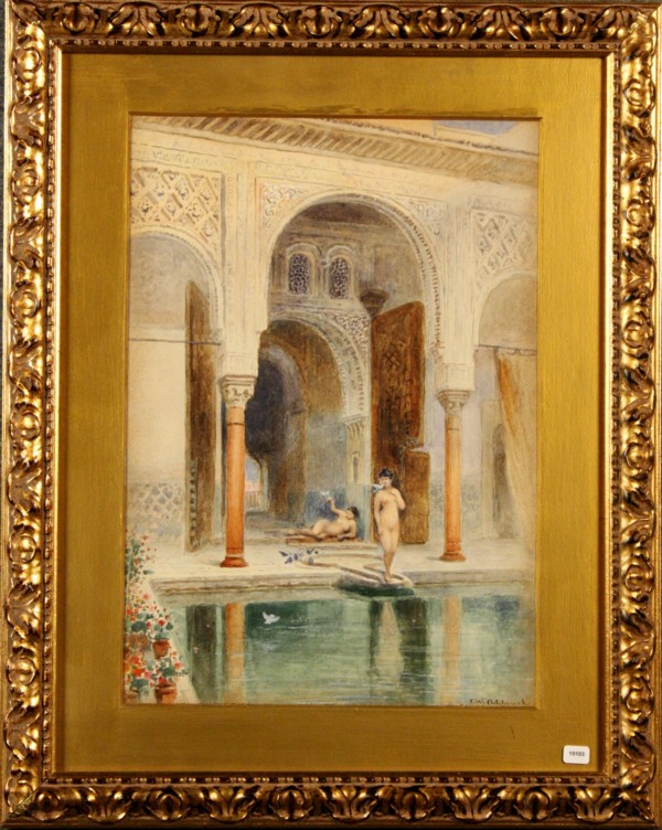 ODELMARK FRANS WILHELM - Svezia, 1849-1937. Acquarello su carta raff. ''NUDI DI DONNE NELL'ALHAMBRA (ANDALUSIA)''. Firmato in basso a destra. In cornice. Mis. Lung. cm. 30 Alt. cm. 42 ca.