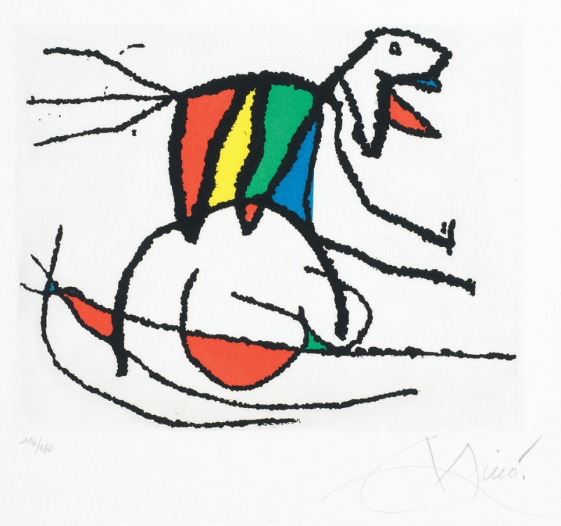 Joan Miró Barcellona 1893 - Palma di Maiorca 1983 El sobreviviente visita los pájaros, 1972 Acquaforte e acquatinta, es. 114/150, cm. 18,5x23 (lastra), cm. 25,5x33,5 (carta) Firma a matita sul margine in basso a destra: Miró, tiratura in basso a sinistra: 114/150. Realizzata per il volume El sobreviviente visita los pájaros, poesie di Pablo Neruda tradotte da Jean Marcenac, Le Vent d'Arles éditeur, Parigi 1972. Tiratura di 150 esemplari numerati da 1 a 150 e 25 esemplari fuori commercio numerati da H.C. I a H.C. XXV. Tipografo Imprimerie Union, Parigi, stampa delle incisioni Arte Adrien Maeght, Parigi. Bibliografia: Jacques Dupin, Miró graveur II. 1961-1973, Daniel Lelong Editeur, Paris, 1989, pp. 200, 201, n. 561.