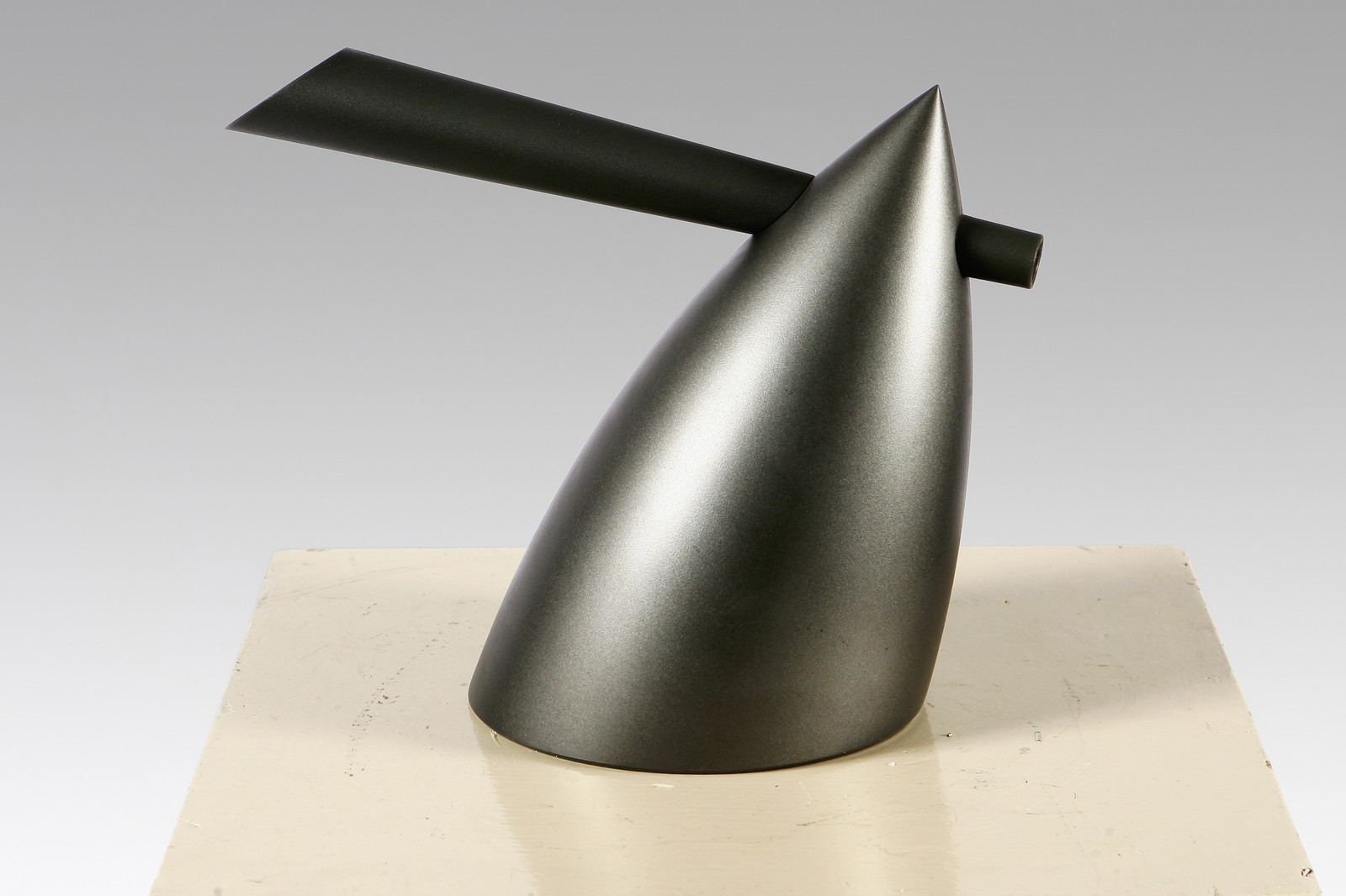 STARK PHILIPPE. Bollitore modello Hot Bertaa. Hot Bertaa kettle. Alluminio verniciato antracite, plastica. Cm 31,5x27x17. Produzione Alessi. Charcoal painted aluminium nd plastic for Alessi. 1990.