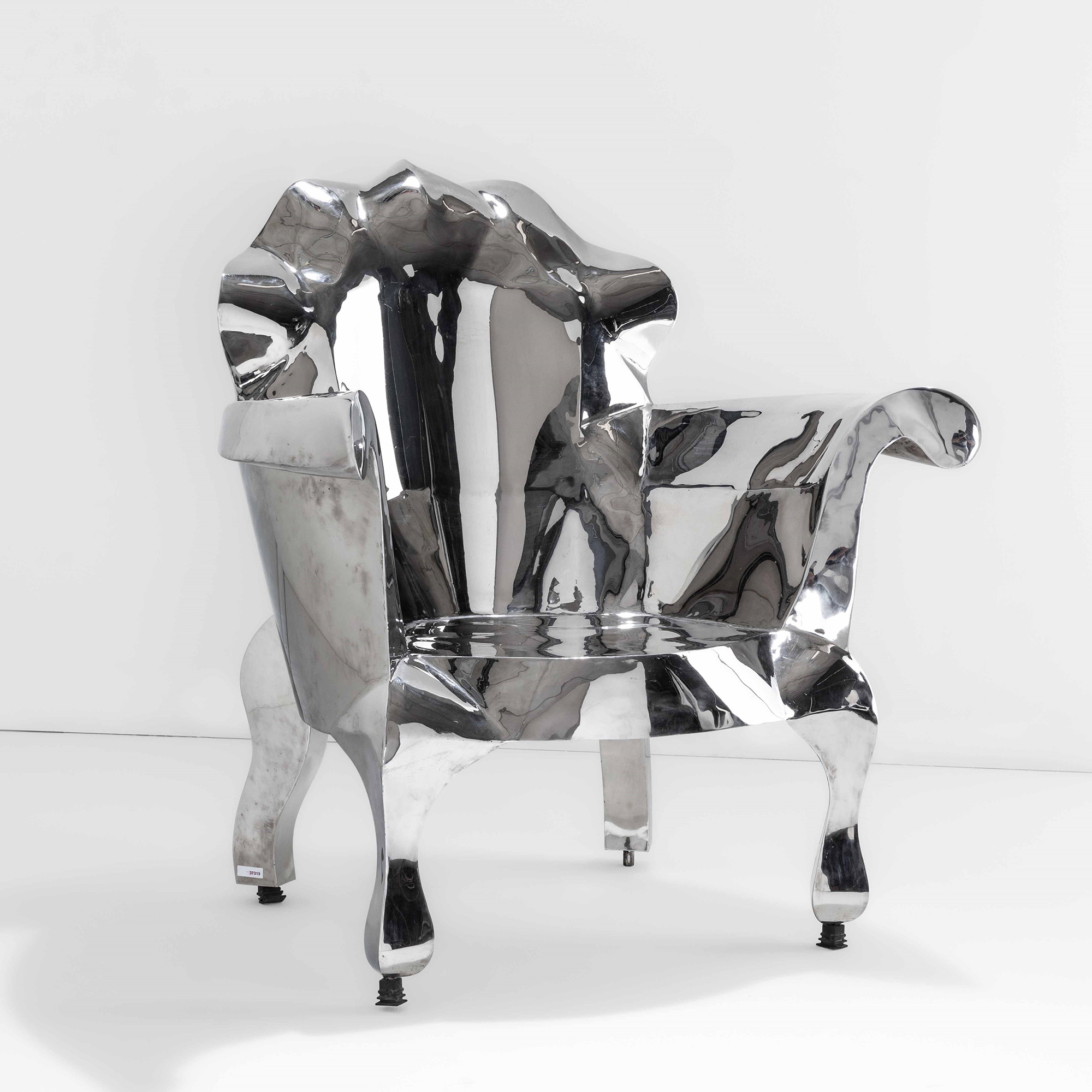 Struttura in acciaio specchiato., Marchio originale., Prod. Italia, 2000 ca., , W. 90 - D. 60 - H. 98 Cm