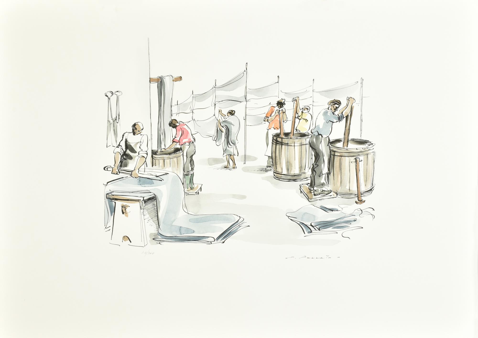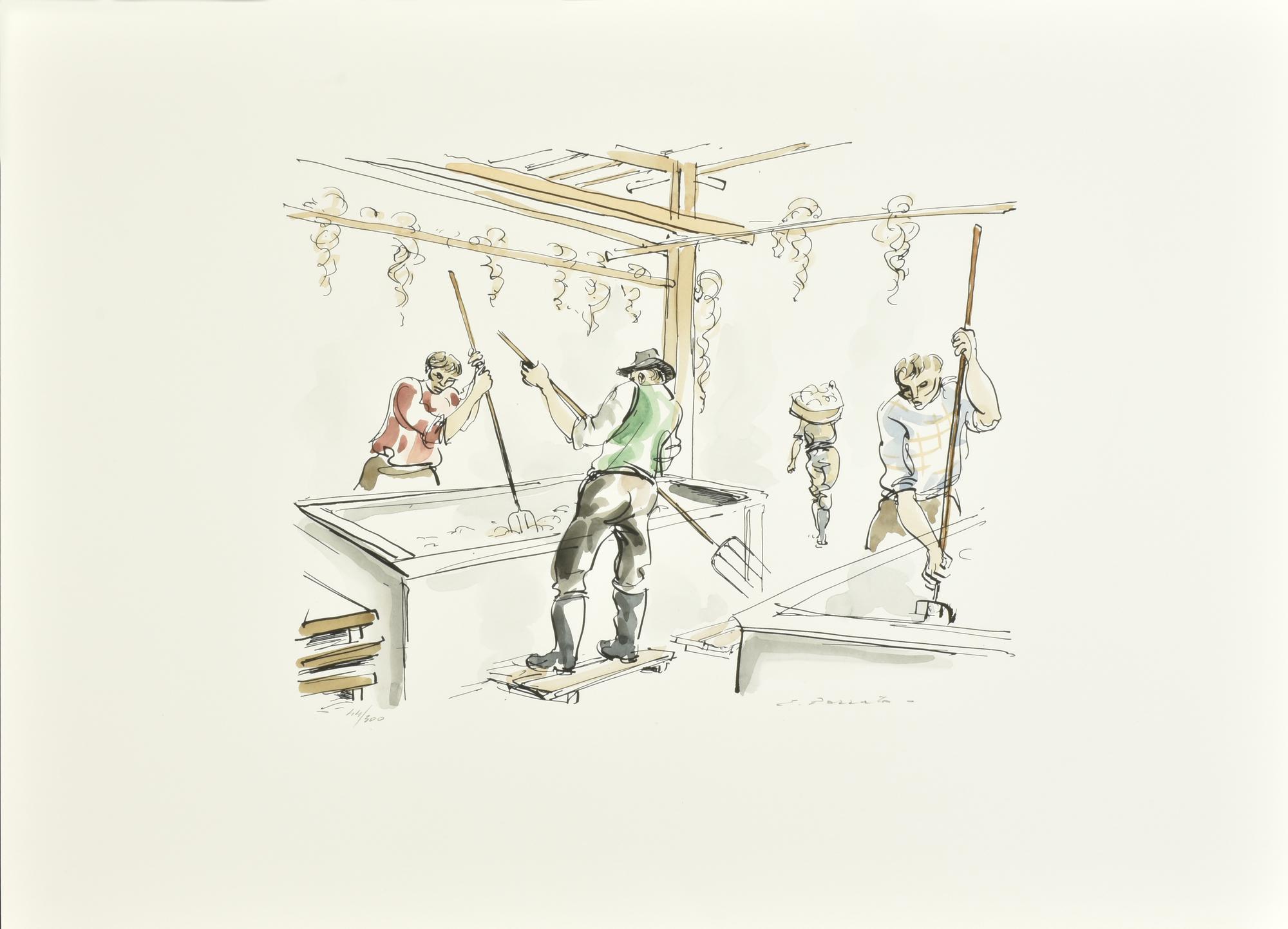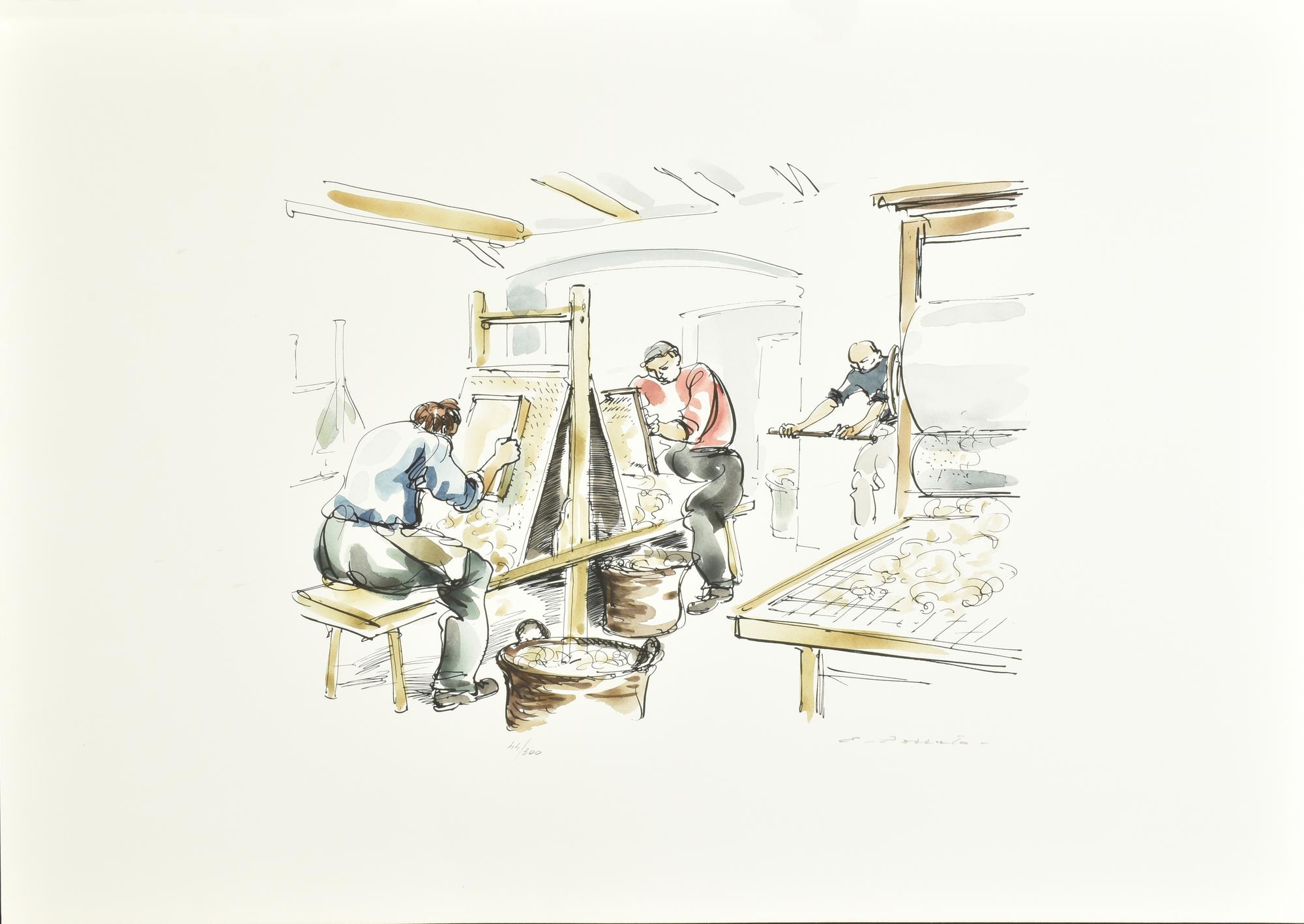 cartellina contenente dodici serigrafie acquarellate a mano, cm 70x50; es. 44/300