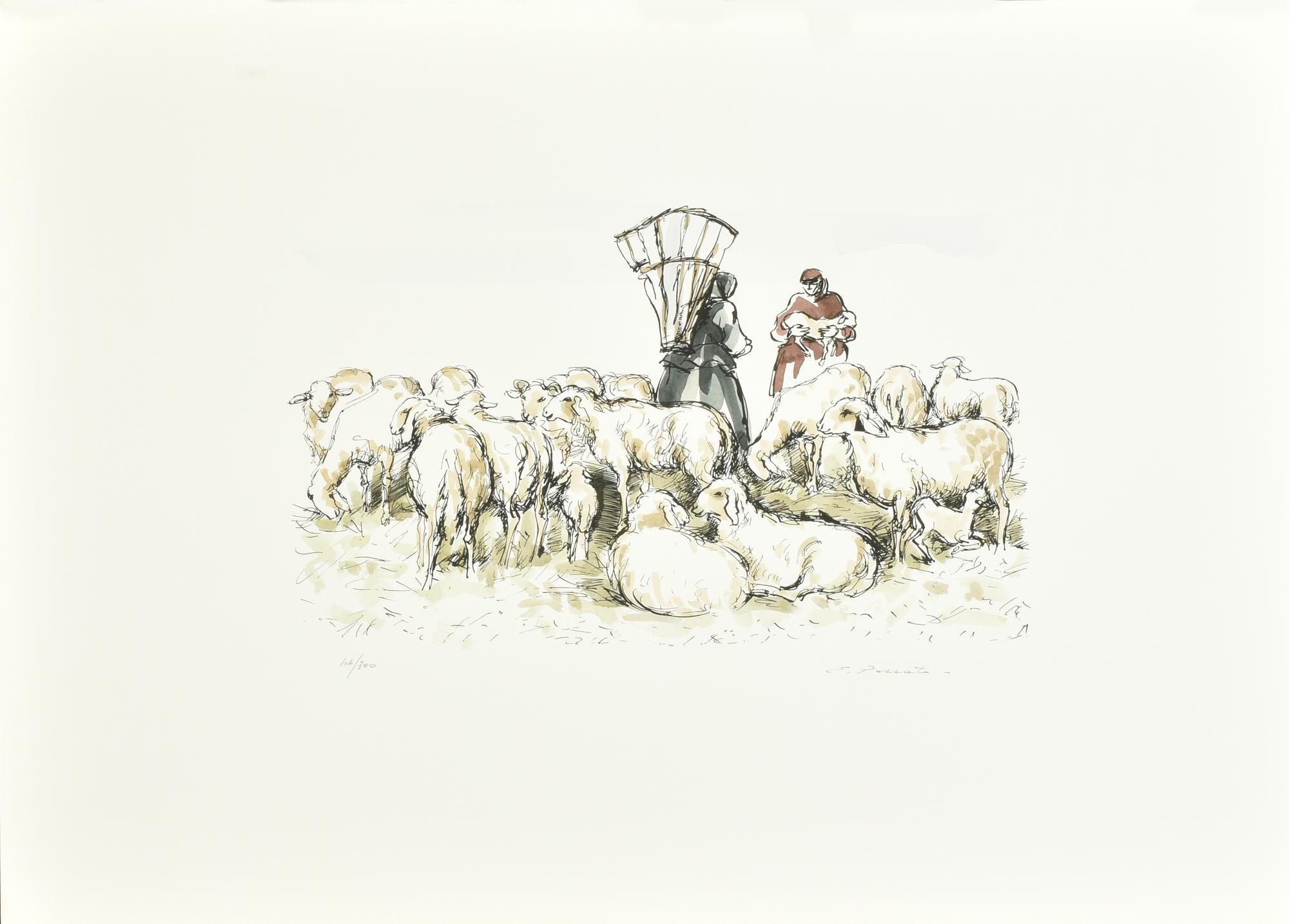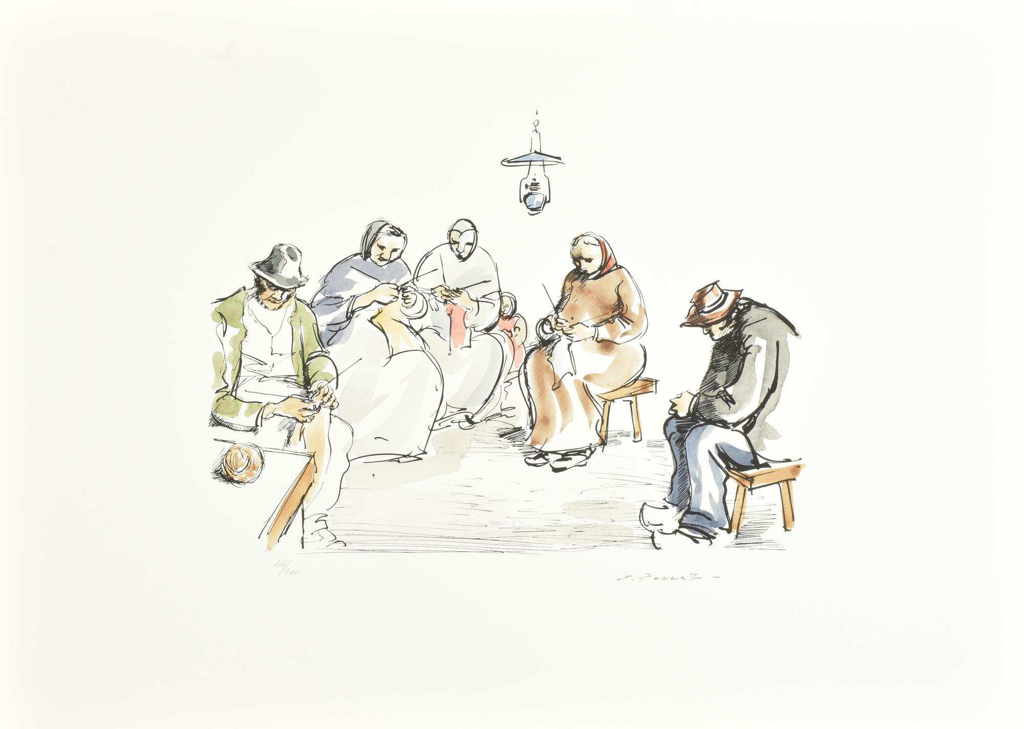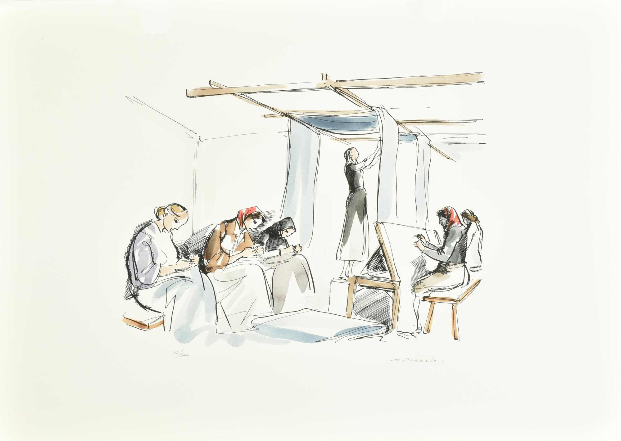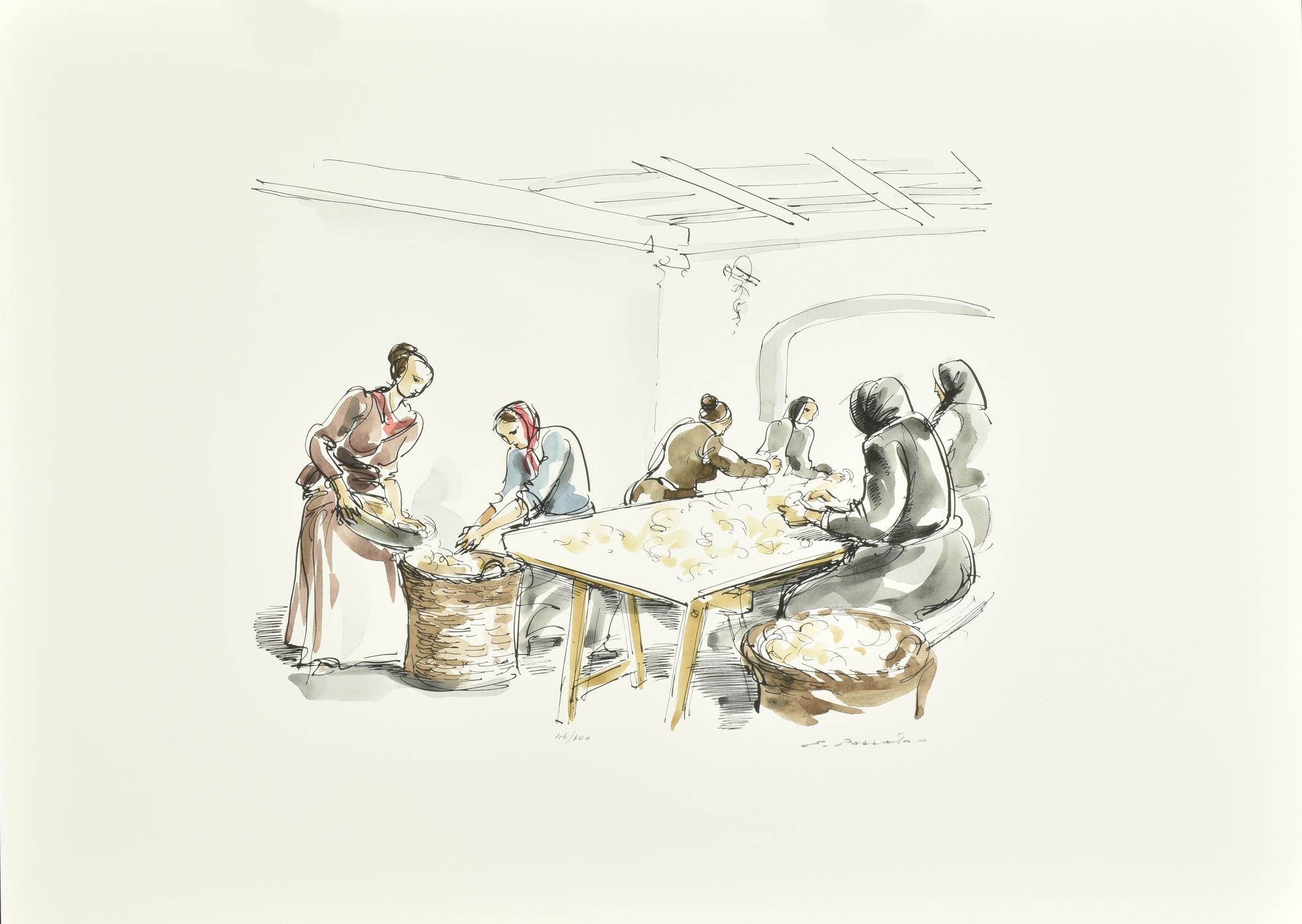 cartellina contenente dodici serigrafie acquarellate a mano, cm 70x50; es. 44/300