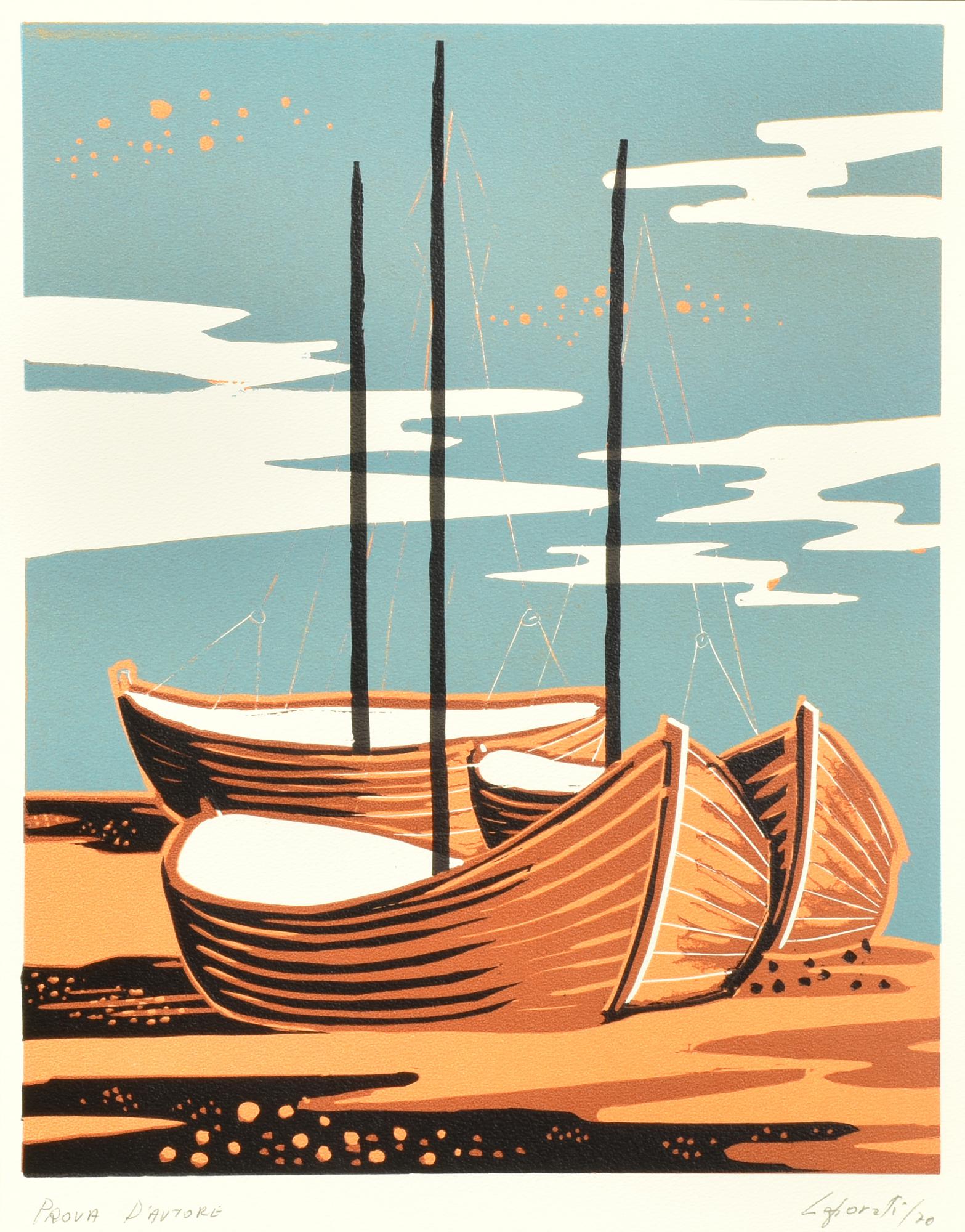 Leporati BARCHE incisione su carta, cm 33,5x26; es. P.A firma e data eseguita...