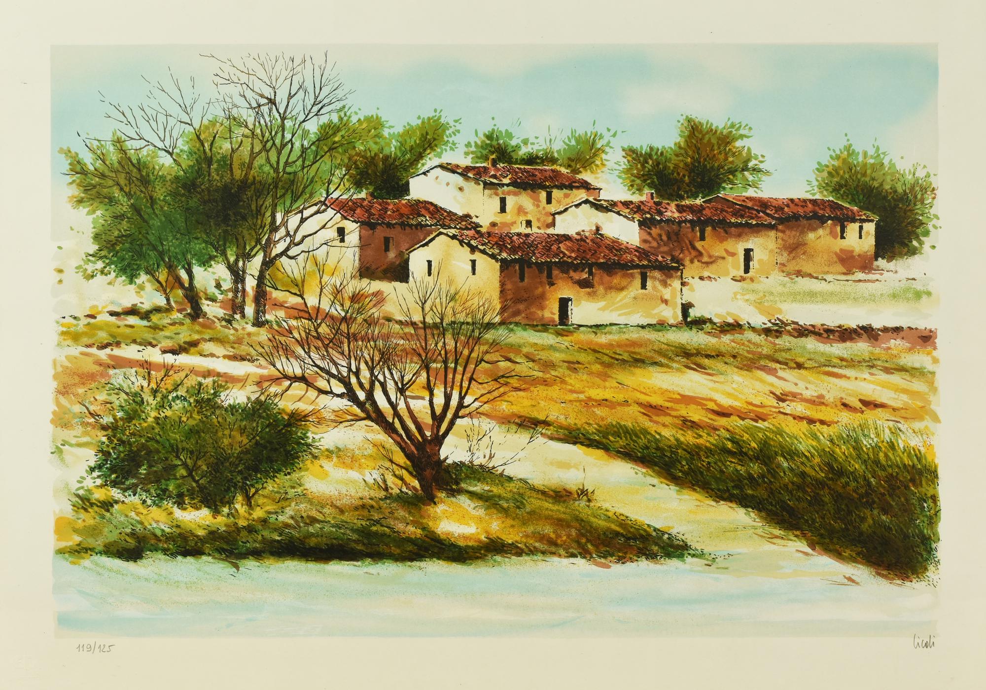 Piero Cicoli ESTATE AL BORGO litografia, cm 50x70; es. 119/125 firma e tiratura