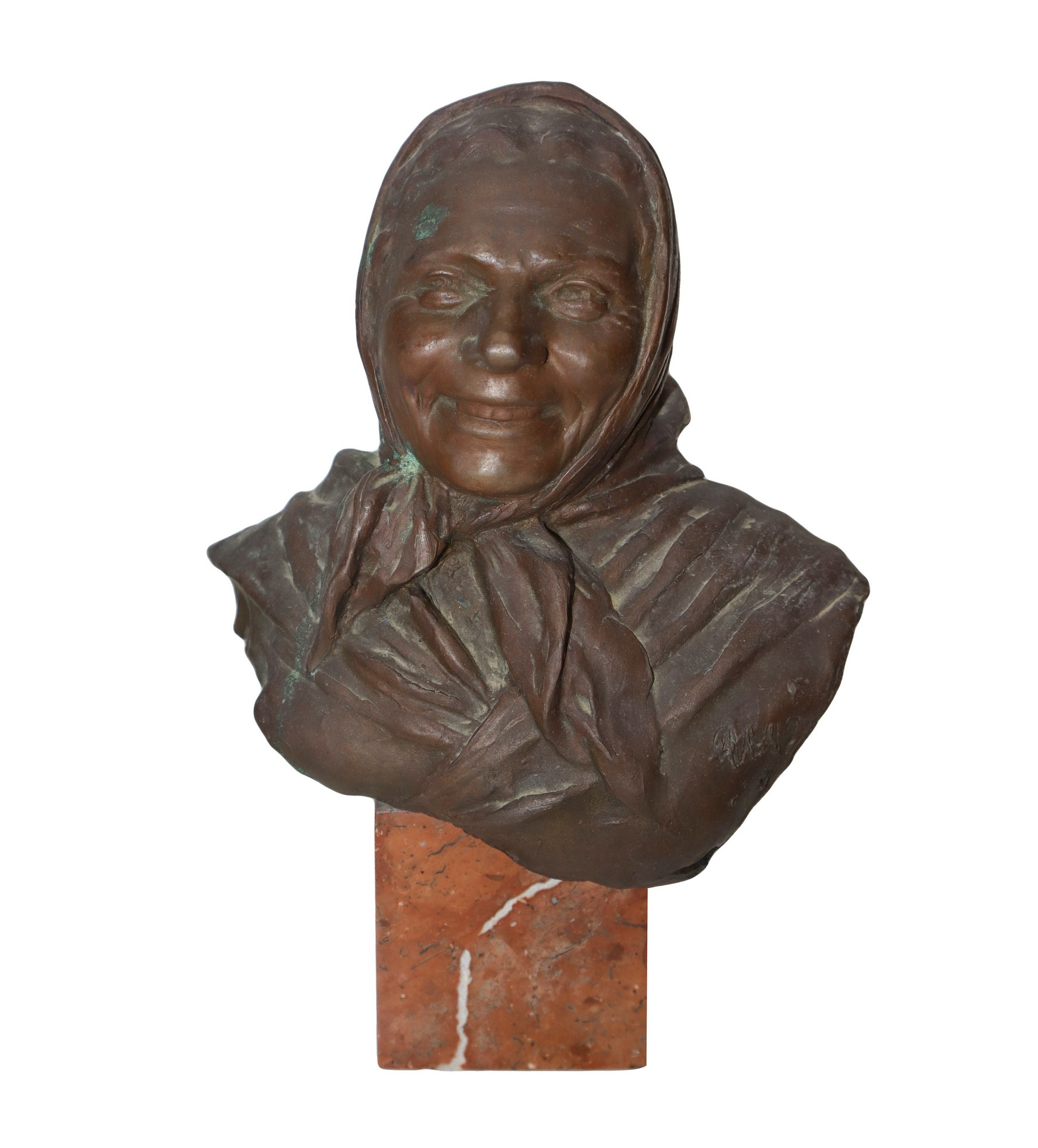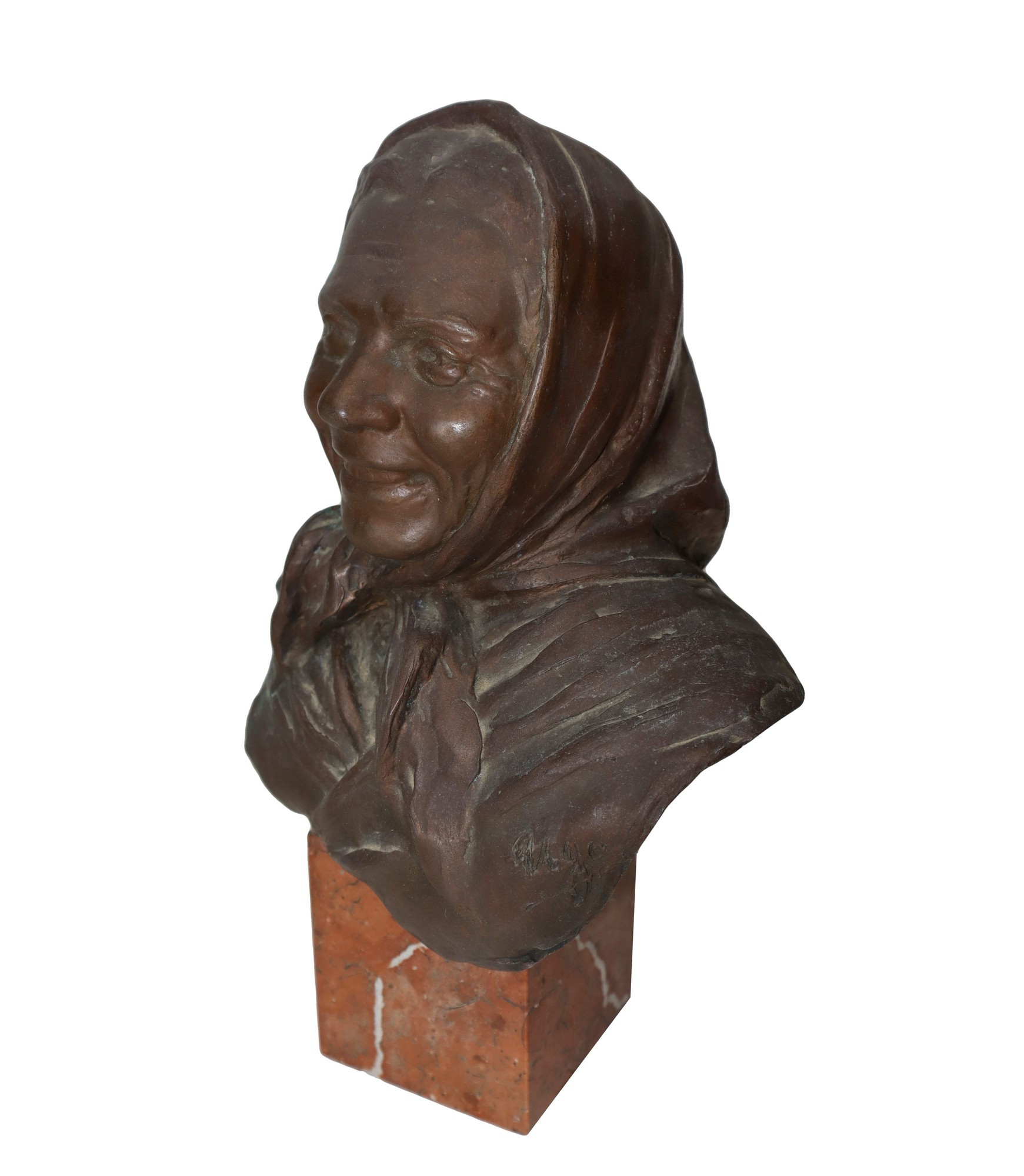 Antonio Ugo (Palermo 1870-Palermo 1950) - Vecchia con fazzoletto in testa, fine 19° Secolo / inizi 20° Secolo cm 26 x cm bronzo Firmato Ugo sul retro