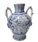 Vaso biansato in maiolica h cm 40 x cm 33 Fondo bianco decorato blu con centauro e amorino sul fronte (Napoli, XVIII secolo, attribuito ad Andrea Vaccari)