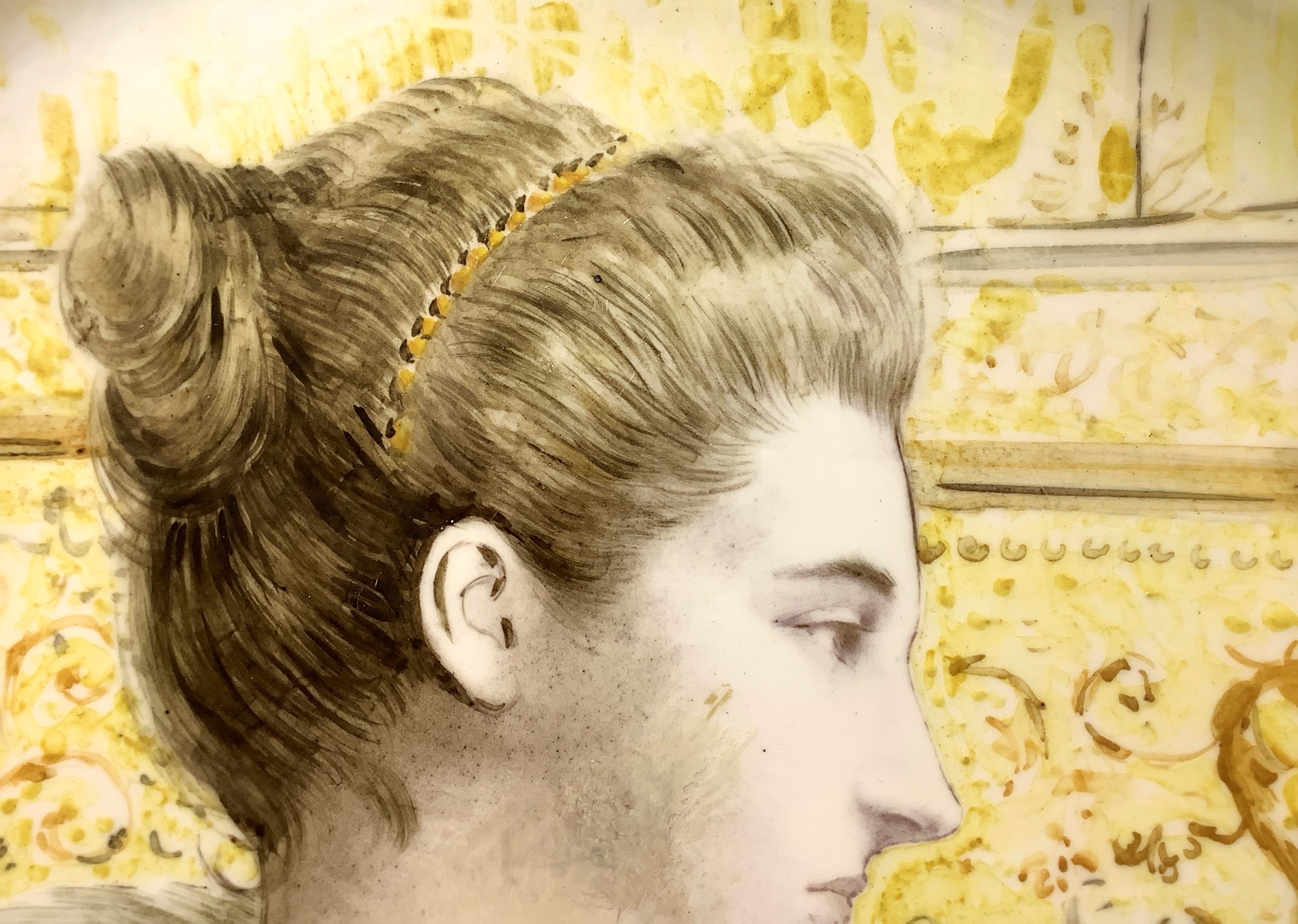 Joseph °éodore Deck (Guebwiller 02 gennaio 1823-Parigi 15 maggio 1891) - Grande piatto con immagine di viso di donna dipinto, nineteen° Secolo