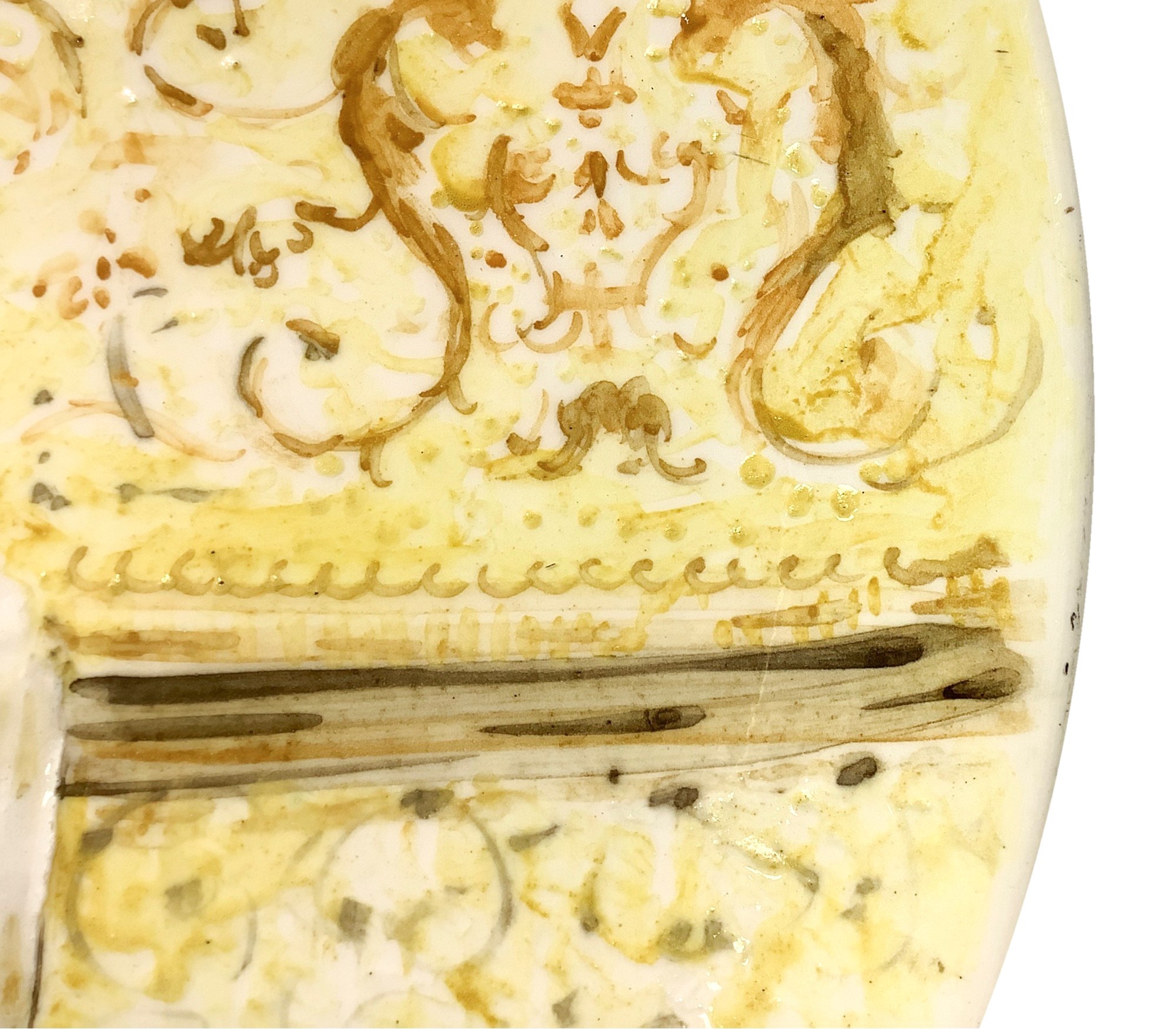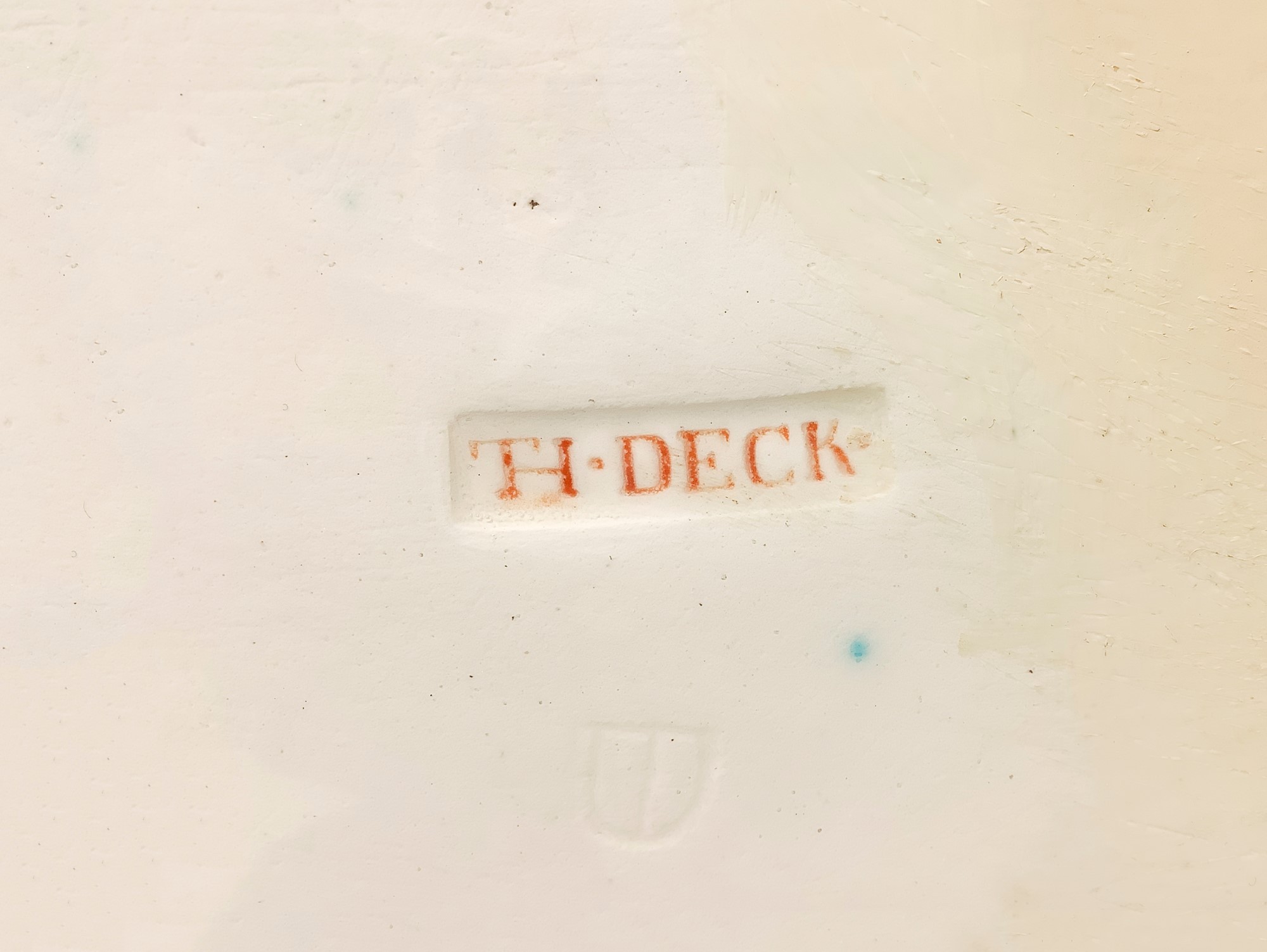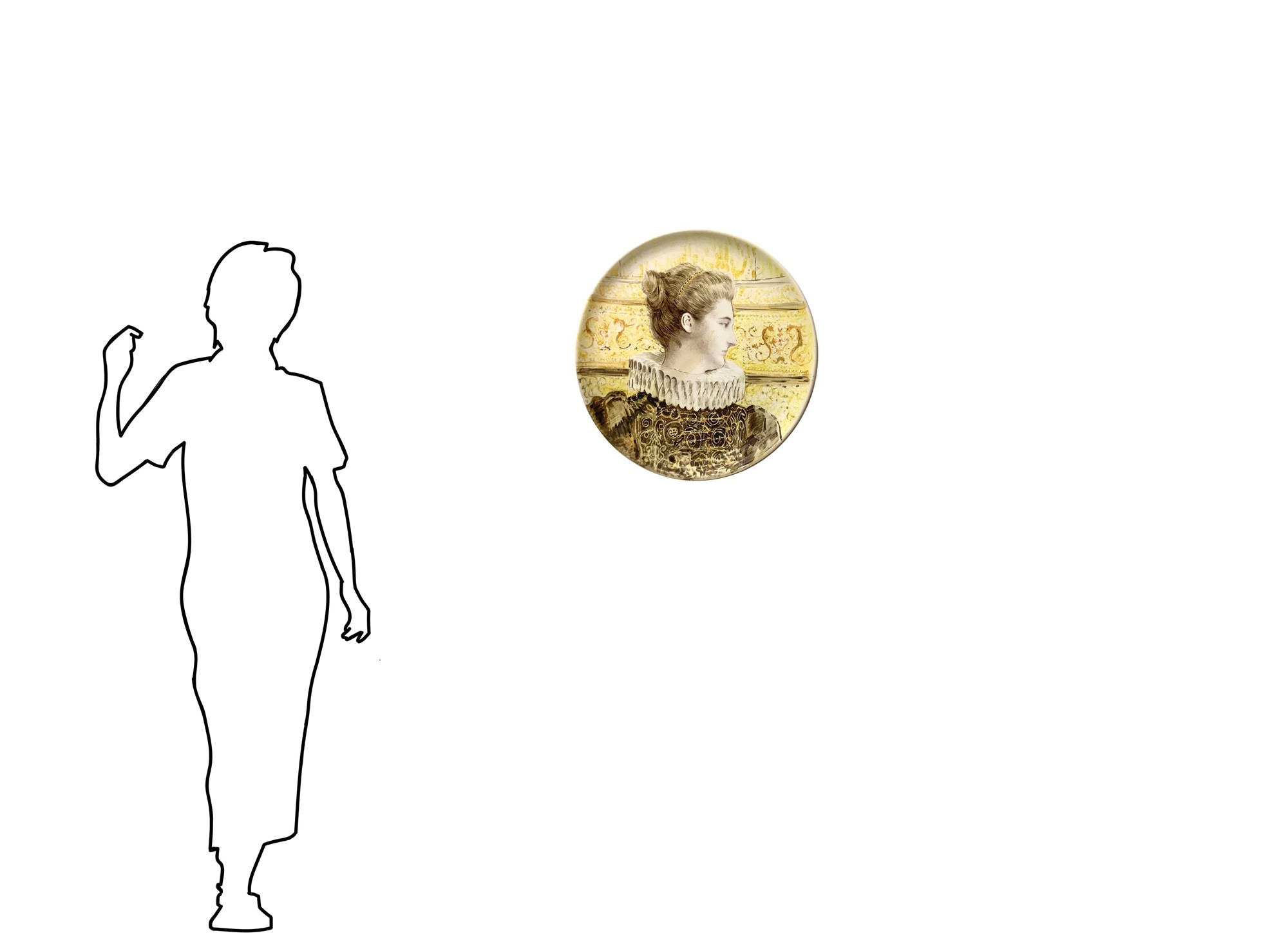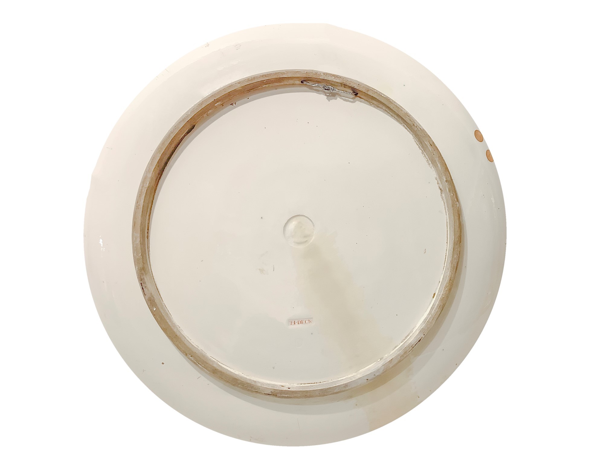 Joseph °éodore Deck (Guebwiller 02 gennaio 1823-Parigi 15 maggio 1891) - Grande piatto con immagine di viso di donna dipinto, nineteen° Secolo diam. cm. 59,5 Ceramica policroma dipinta a mano Marchio sulla parte inferiore del piatto; Restauri sul retro