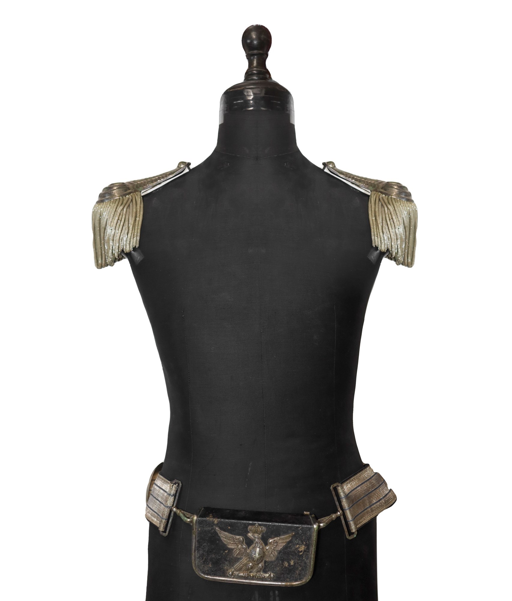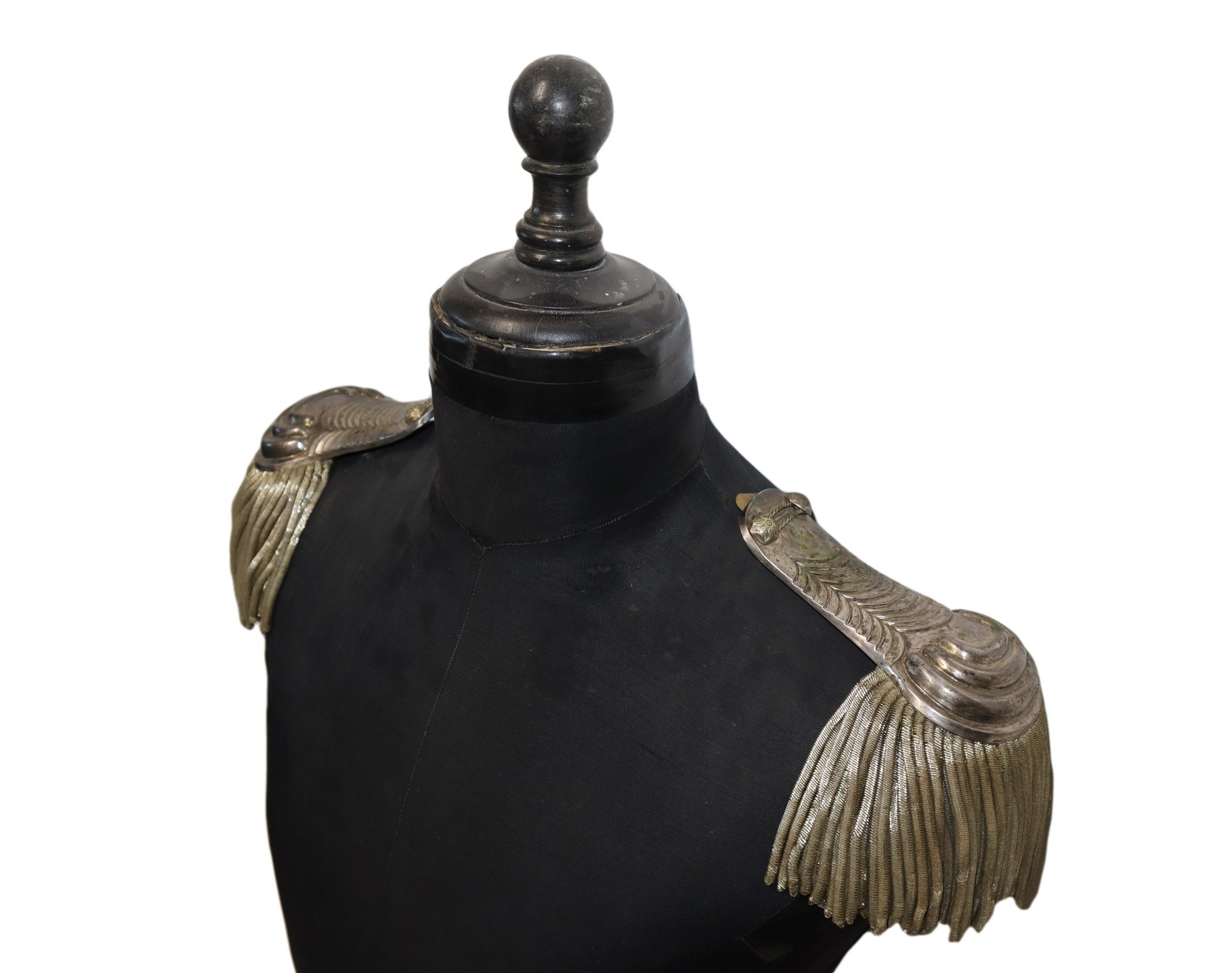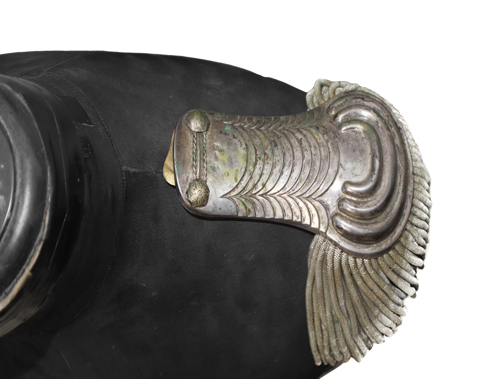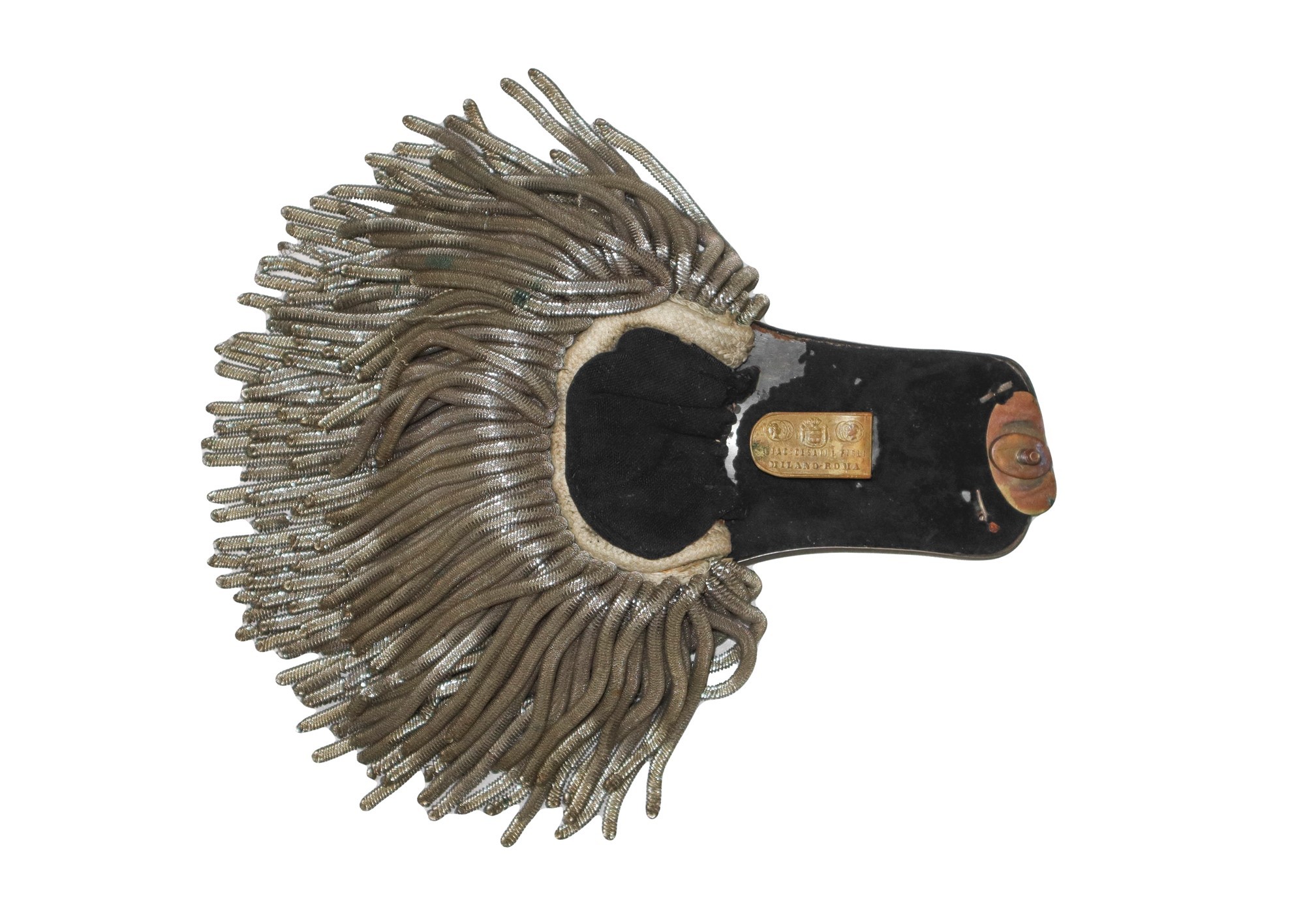 Antica coppia di spalline con giberna da ufficiale in argento Presente leggera scucitura su una frangia