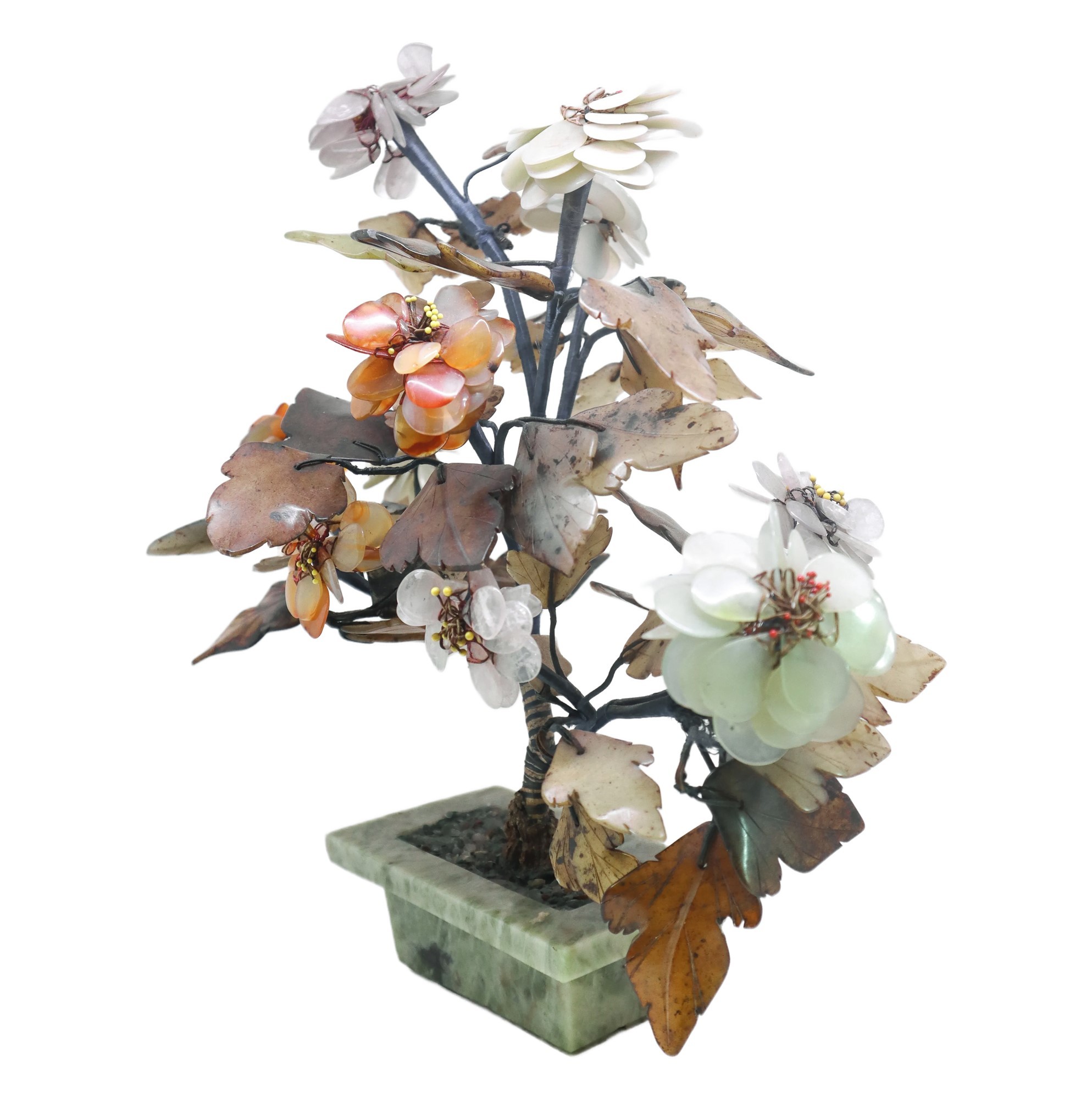 Albero in giada, corniola e quarzo h cm 34 Presenti rotture