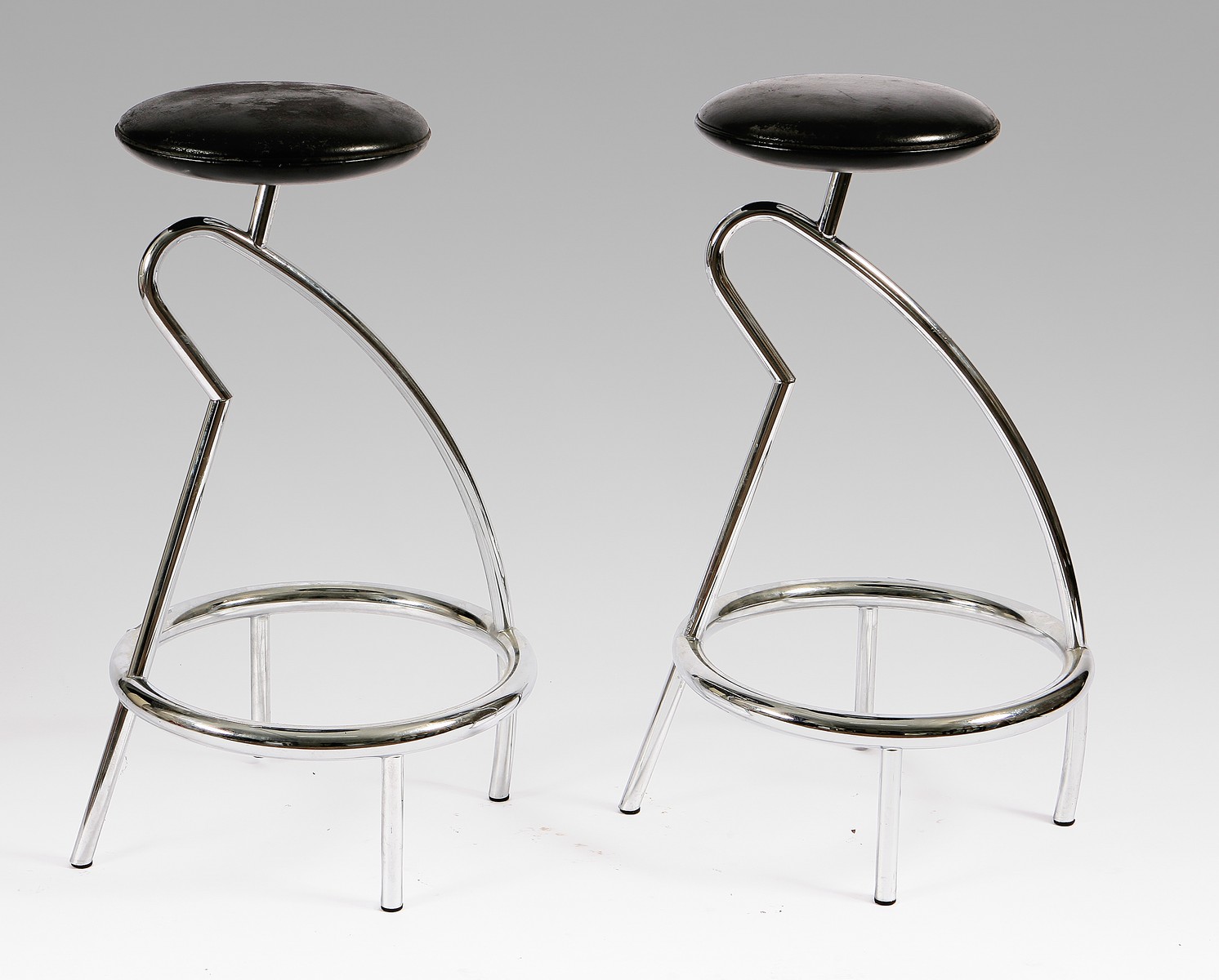 IOSA GHINI MASSIMO (N. 1959). Coppia di sgabelli della serie Dinamic collection. Pair of stools "Dinamic Collection". Metallo cromato e poliuretano. Cm 42x80. Struttura in tubolare metallico cromato, sedile rivestito con poliuretano espanso indeformabile. Produzione Moroso. Tubular structure in chromed metal, seat upholstered with polyurethane foam. For Moroso. 1986.