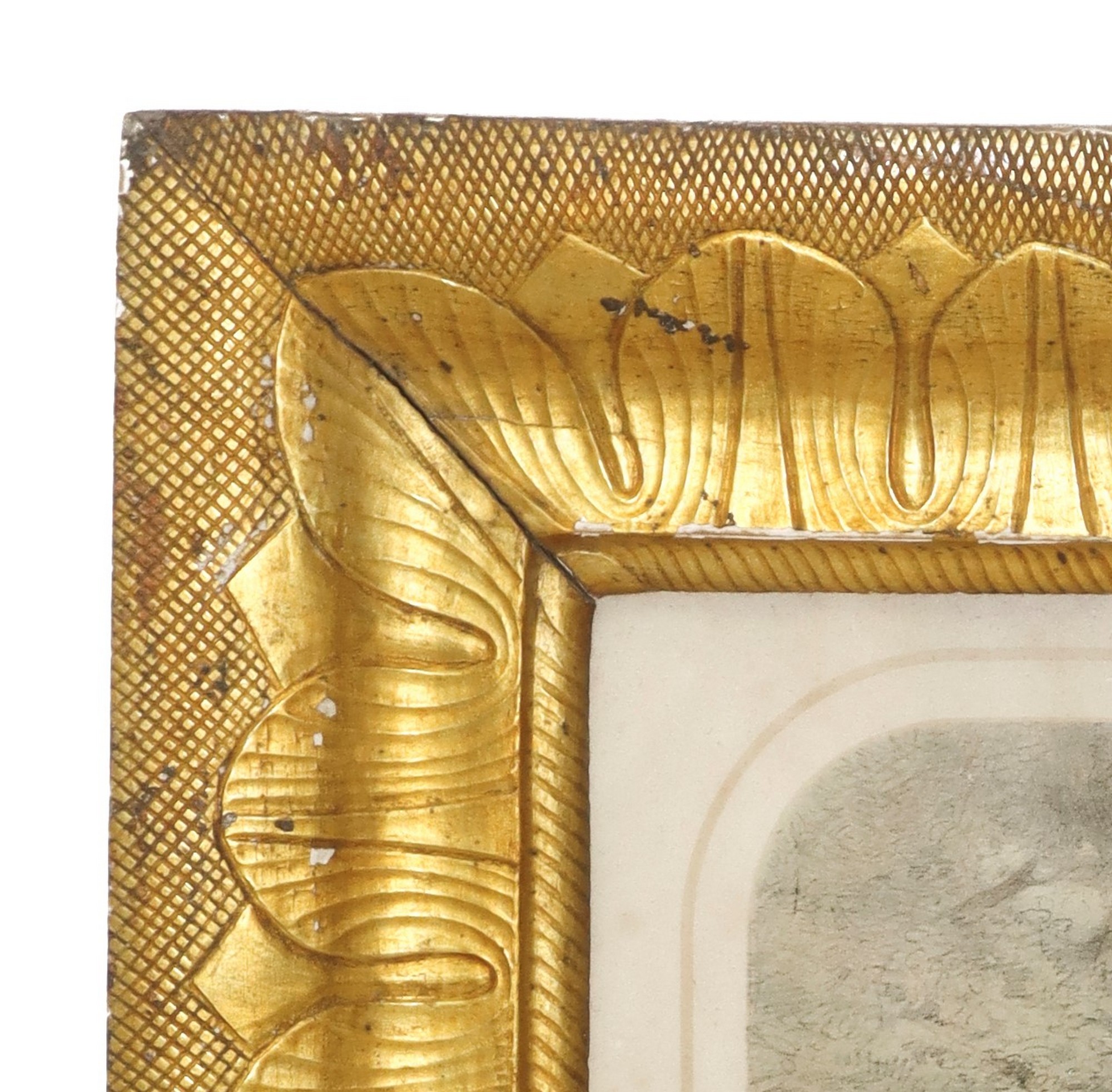 Cornice con stampa in legno dorato a foglia, Sicily, inizi 19° Secolo