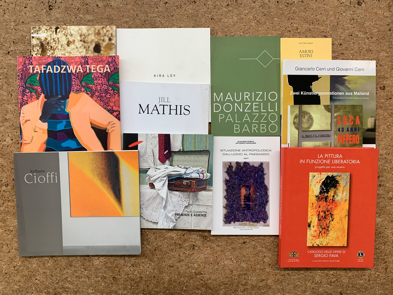 Lotto unico di 12 monografie riccamente illustrate di artisti contemporanei tra cui: Maurizio Donzelli, Matteo Negri, Claudio Costa/Antonio Paradiso, Luca Piffero, Isabella Nazzari, Raffaele Cioffi, Sergio Fava, Paolo Quaresima, Tafadzwa Tega, Jill Mathis, Kira Lev, Giancarlo Cerri