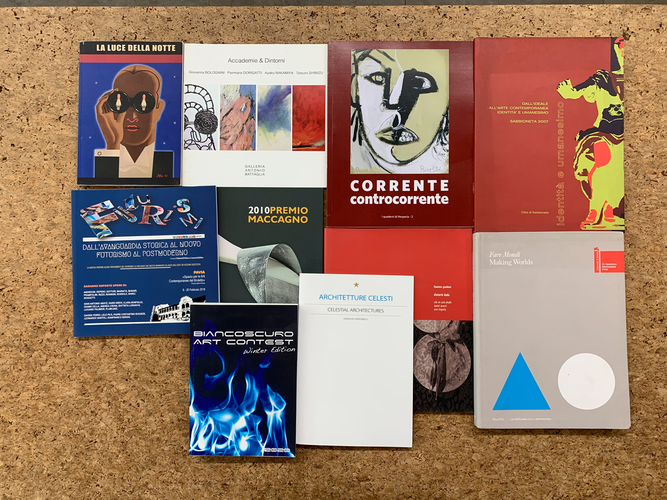 Lotto unico di 10 cataloghi riccamente illustrati relativi a premi d'arte e rassegne collettive tra cui: Architetture celesti, La Luce della notte, Biancoscuro Art Contest, Futurismi, Premio Maccagno, Accademie & Dintorni, Dintorni Dada, Corrente-Controcorrente, Fare Mondi (Biennale di Venezia), Identità e umanesimo