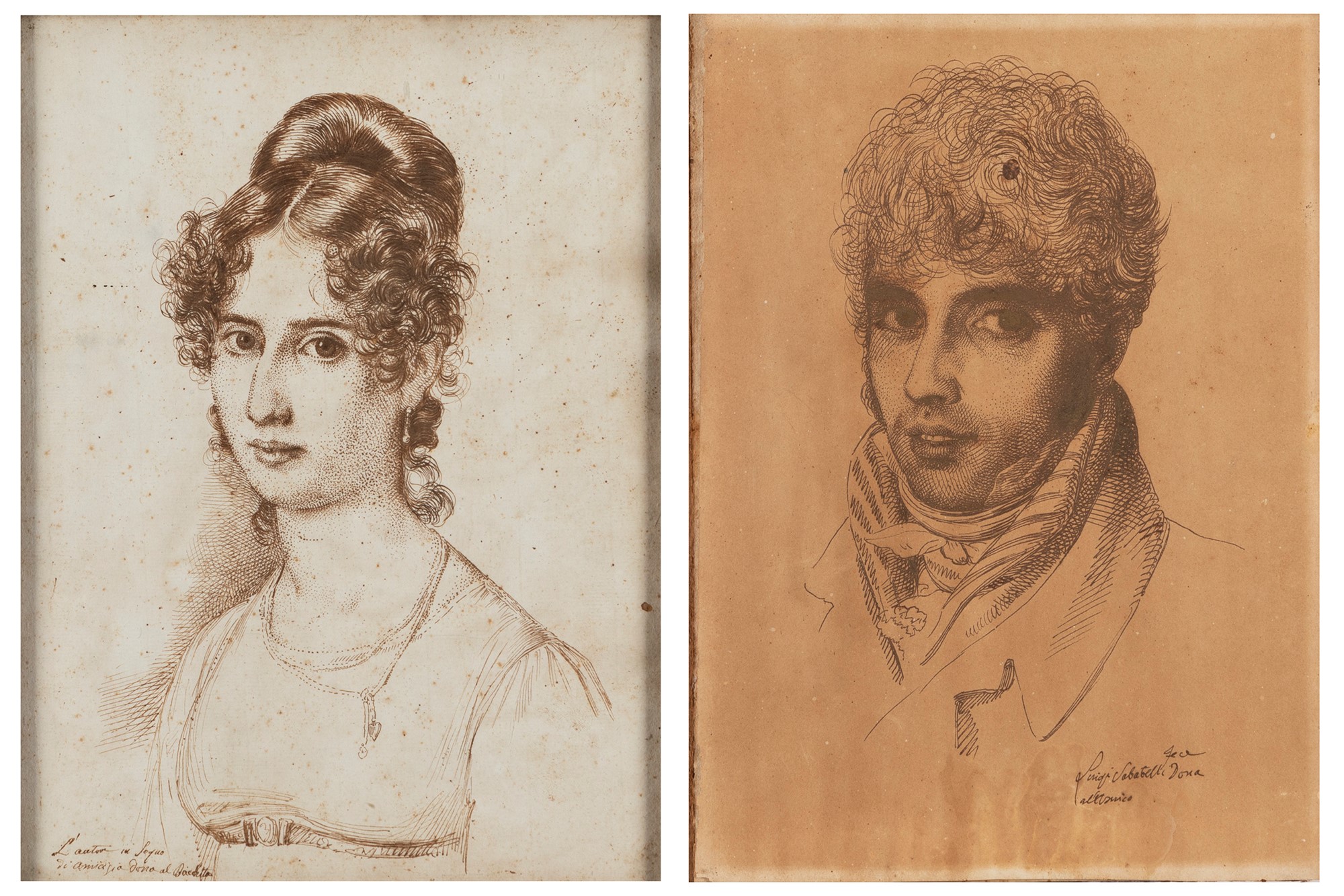 il ritratto maschile è firmato e dedicato in basso a destra: Luigi Sabatelli fece dono all'amico; il ritratto femminile è iscritto in basso a sinistra: L'autore in segno di amicizia dona al Bacchetta