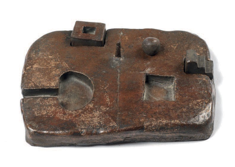 Gonzalo Fonseca Montevideo 1922 - Pietrasanta (Lu) 1997 Lughetto, 1972 Scultura in bronzo, es. 2/4, cm. 2,5x14,3x11,5 Firma, data e tiratura sulla base: Fonseca 72 2/4. Storia: Collezione Giovanni Tesconi, Pietrasanta; Collezione privata Esposizioni: Una collezione internazionale di piccole sculture del secondo Novecento, Malcesine, Castello scaligero, 11 giugno - 15 settembre 2005, cat. p. 37, illustrata a colori.