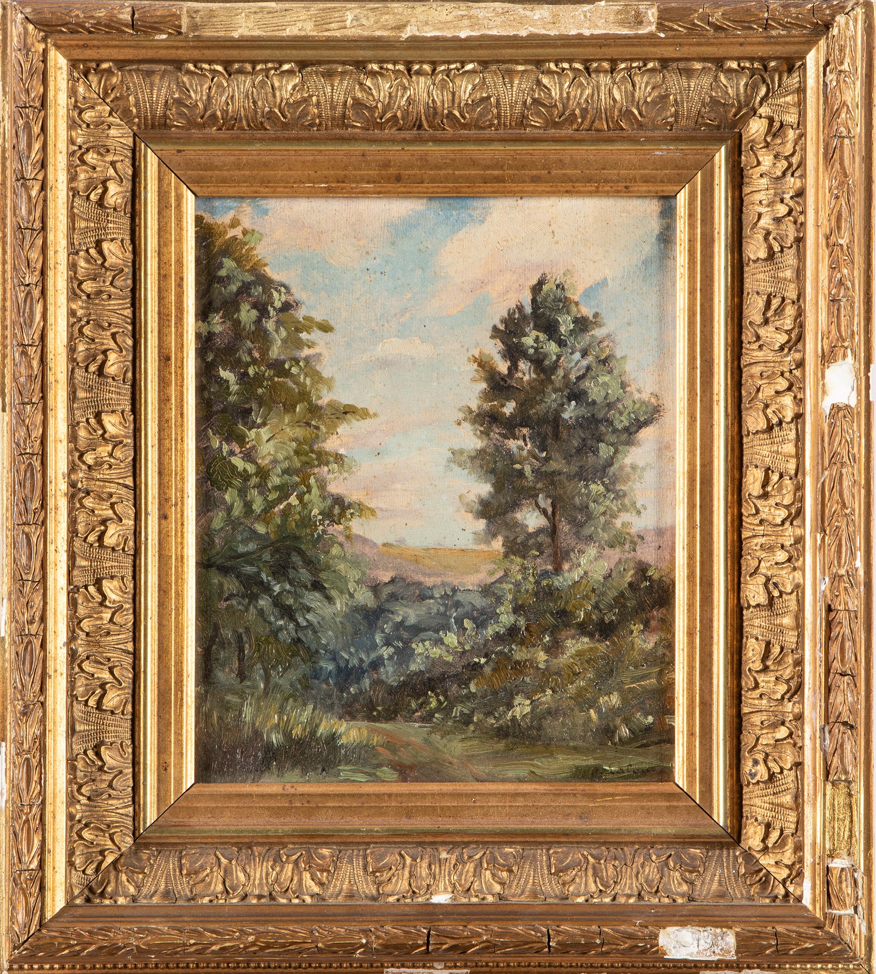 Auguste Laloue (Francia circa 1800-1860) - Paesaggio con alberi