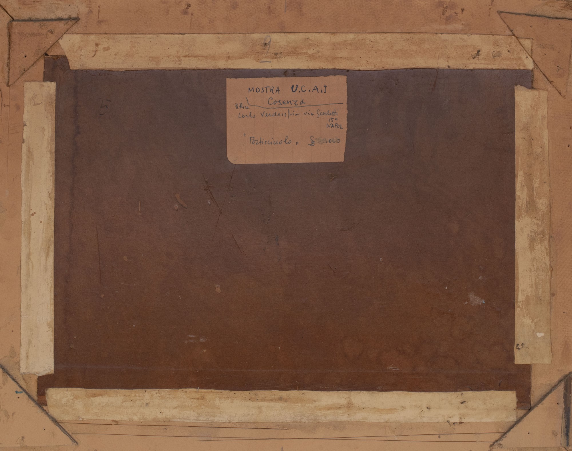 Sul retro: numero di riferimento (5); vecchio cartellino manoscritto “MOSTRA U.C.A.I / Cosenza”.